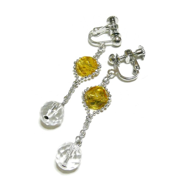 美しい黄色に澄んだ上質のシトリンが、 美しく澄んだ水晶と共に揺れるイヤリングです。 【 シトリンと水晶のイヤリング 】 ・主体石1:黄水晶/シトリン(8mmカット珠)×2、 ・主体石2:水晶/クリスタルクォーツ(8mmカット珠)×2 ・金属素材:ブラス製 ・イヤリング金具:ネジバネ式 (軽く、装着時の負担が極めて少ないオススメのイヤリング金具です。) ・仕上げ:貴金属メッキ(ロジウムコート) (いわゆるPt900など、プラチナのジュエリーと同じお色のメッキです。) ・片方あたりの重さ:2.62g ~付属品~ ・保管&携帯用特製ポーチ 末永くご愛用頂けますように、 お買い求め後のアフターサービスに関しましても万全の体制を整えております。 どうぞご安心の上、お求め下さいませ。 同じデザインでピアスのお品もございます。 「 シトリン 水晶 ピアス クリスタルウィズ 」と検索なさりご覧下さい。