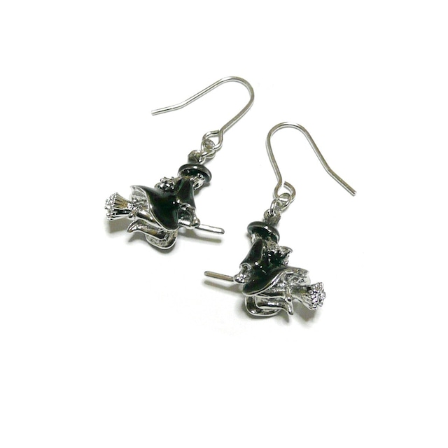 空飛ぶ魔女 ピアス 箒 ホウキ チャーム ブラック 銀色 シルバーカラー 【 ファンタジー 】
