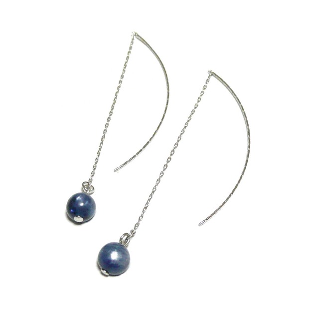 カイヤナイト ピアス 小粒 ロング 銀色 シルバーカラー 6mm 丸珠 藍晶石 【 女王 アヴァンテ 】