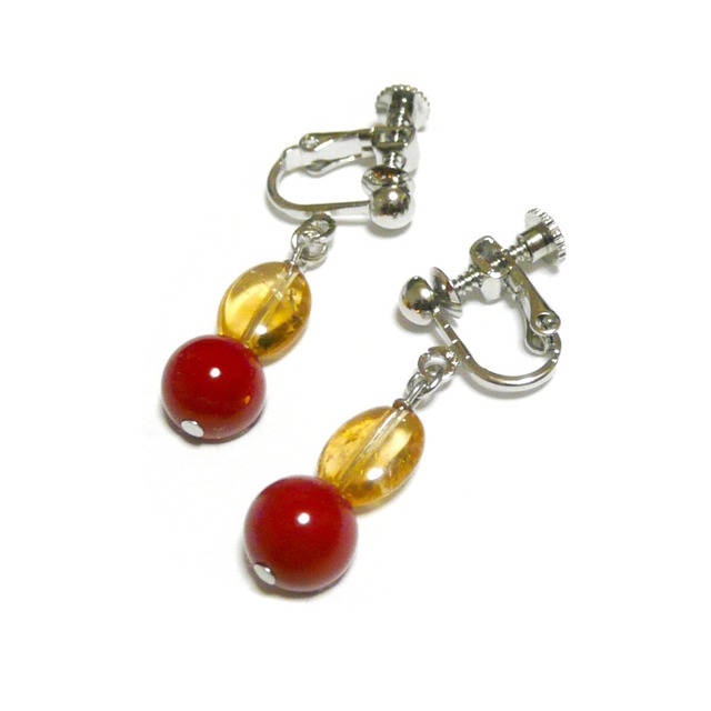 オーバルカットのシトリンと赤珊瑚が繋がるイヤリングです。 ~製品概要~ ・主体石1:シトリン/黄水晶(オーバル/6×9mm珠)×2 ・主体石2:染め赤さんご(海竹/8mm丸珠)×2 ・イヤリング金具:ブラス製ネジバネ式 (軽く、装着時の負担が極めて少ないオススメのイヤリング金具です。) ・仕上げ:貴金属メッキ(ロジウムコート) ~付属品~ ・保管&携帯用特製ポーチ 末永くご愛用頂けますように、 お買い求め後のアフターサービスに関しましても万全の体制を整えております。 どうぞご安心の上、お求め下さいませ。 同じデザインでピアスのお品もございます。 「 シトリン 赤珊瑚 繋がる ピアス 」と検索なさりご覧下さい。