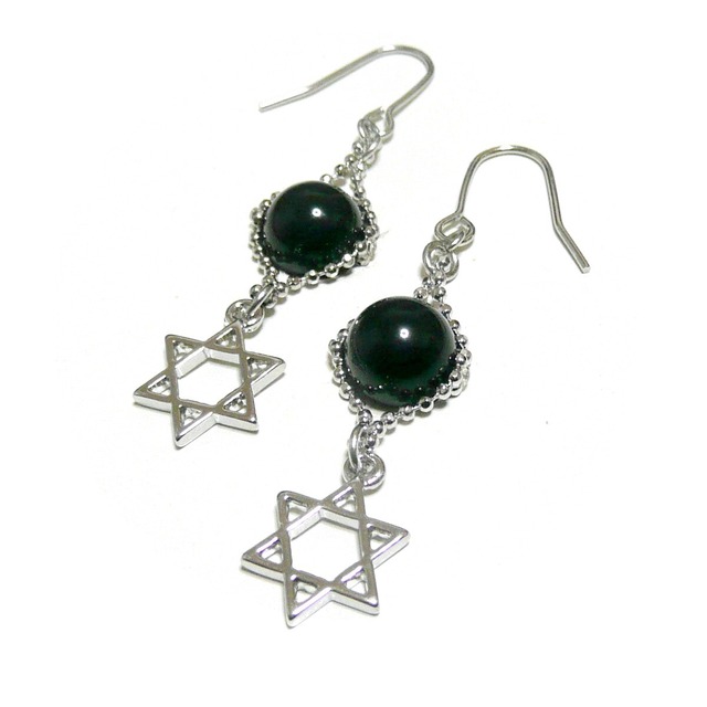 黒珊瑚 イヤリング 六芒星 サンゴ さんご コーラル 銀色 シルバーカラー 【 聖母の星 】