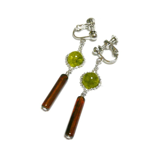 ペリドット と 琥珀 イヤリング アンバー スティック 銀色 シルバーカラー【 バルト海でダンス 】