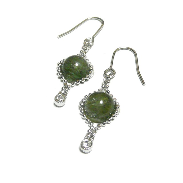 グリーンガーネット ピアス 8mm 丸珠 キュービック 緑 柘榴石 銀色 シルバーカラー 【 さざめき オリオン 】