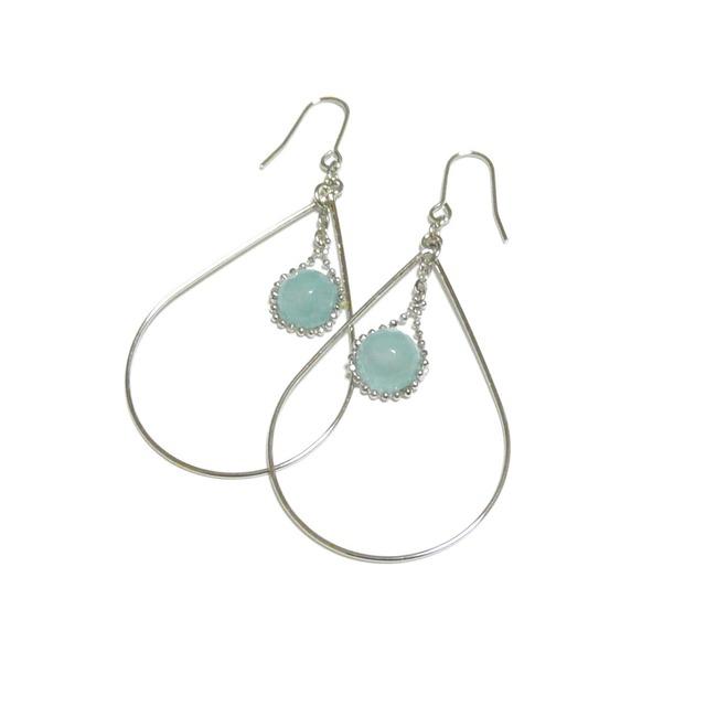 アクアマリン ピアス フープ ドロップ 8mm 銀色 シルバーカラー 【 スリムフープ 】