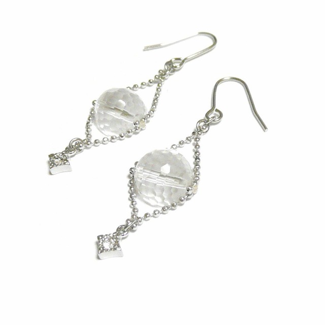 水晶 イヤリング クリスタル クォーツ キュービックジルコニア スクエア 銀色 シルバーカラー 10mmカット珠 きらり