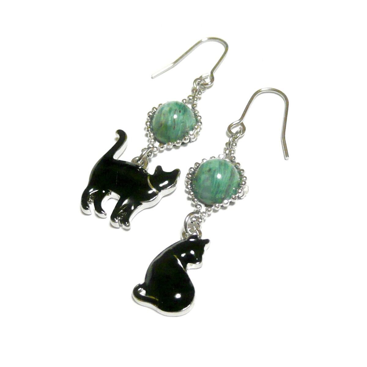 表情豊かな天然石エメラルドと二匹の黒猫が、
