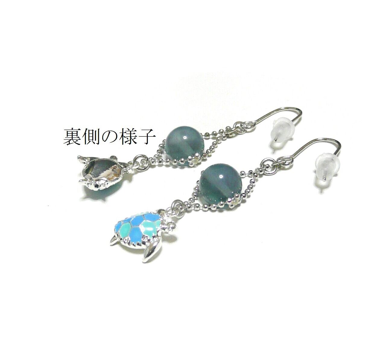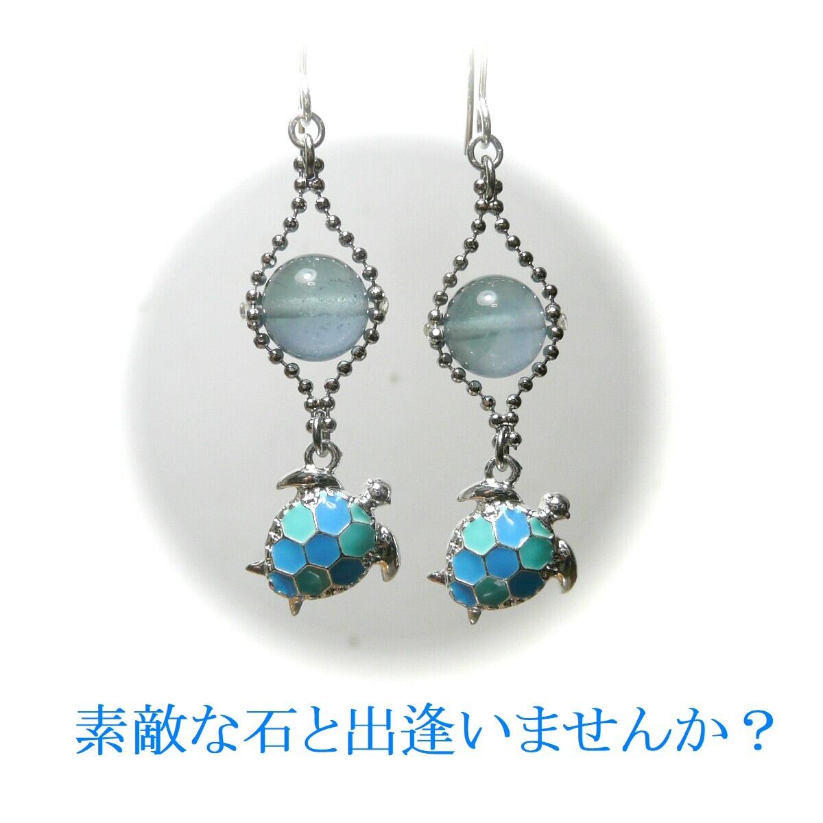 「 フローライト 海亀 イヤリング 」で検索なさりご覧下さい。