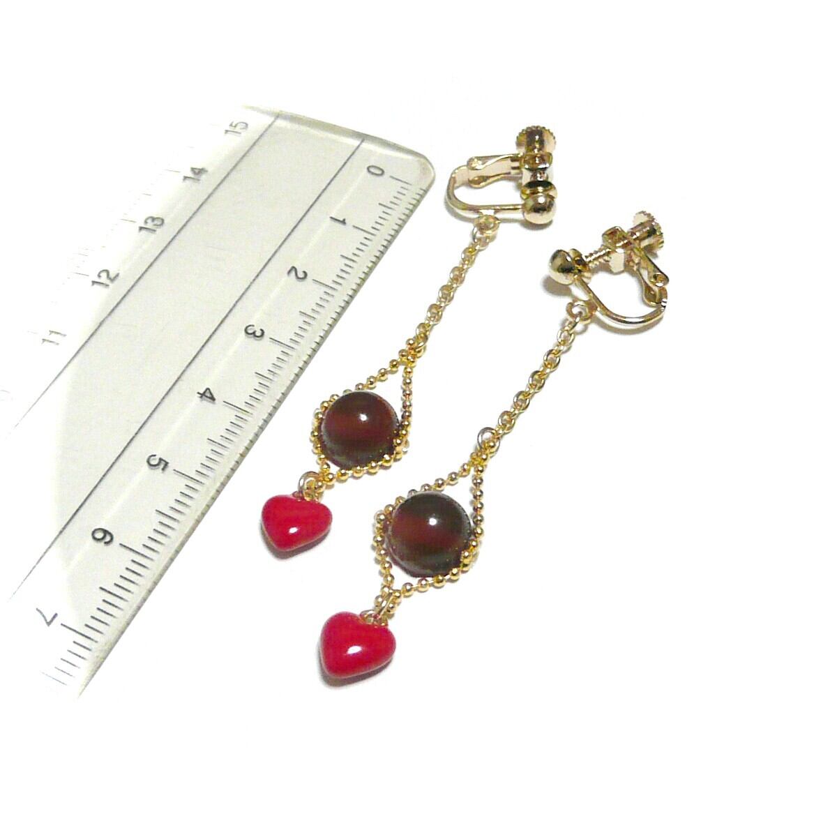 エポキシ彩色されたハートのチャームと共に揺れるロングイヤリングです。