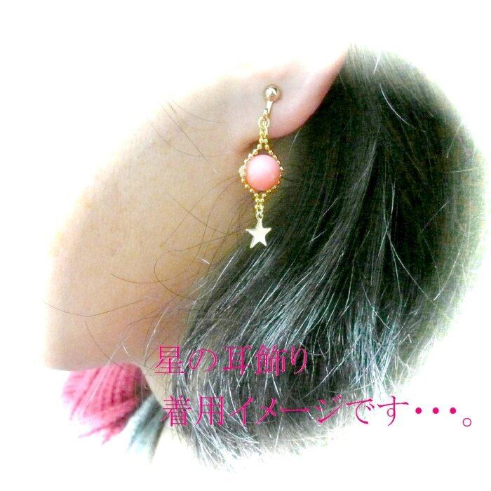 小さな星のチャームと共に揺れるピアスです。