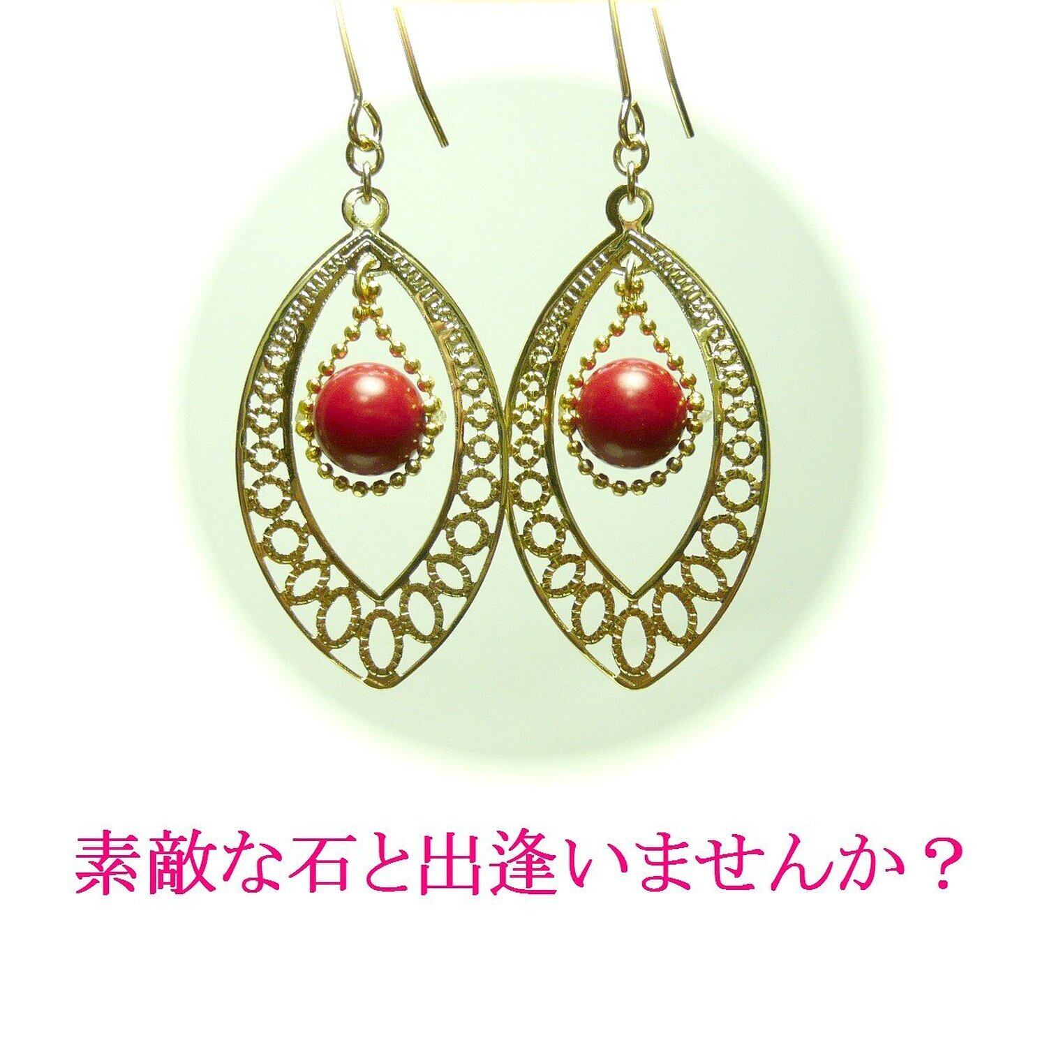 「 赤珊瑚 イヤリング マーキス フレーム 」と検索なさりご覧下さい。