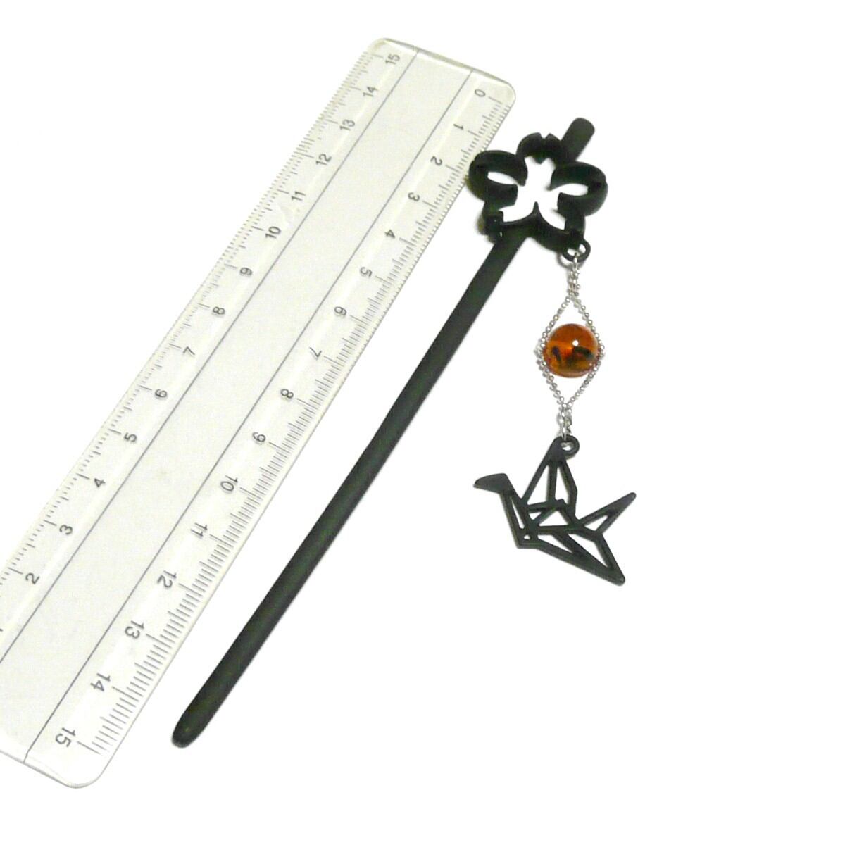 ボールチェーン枠に包まれて、折り鶴と共に揺れる髪飾りです。