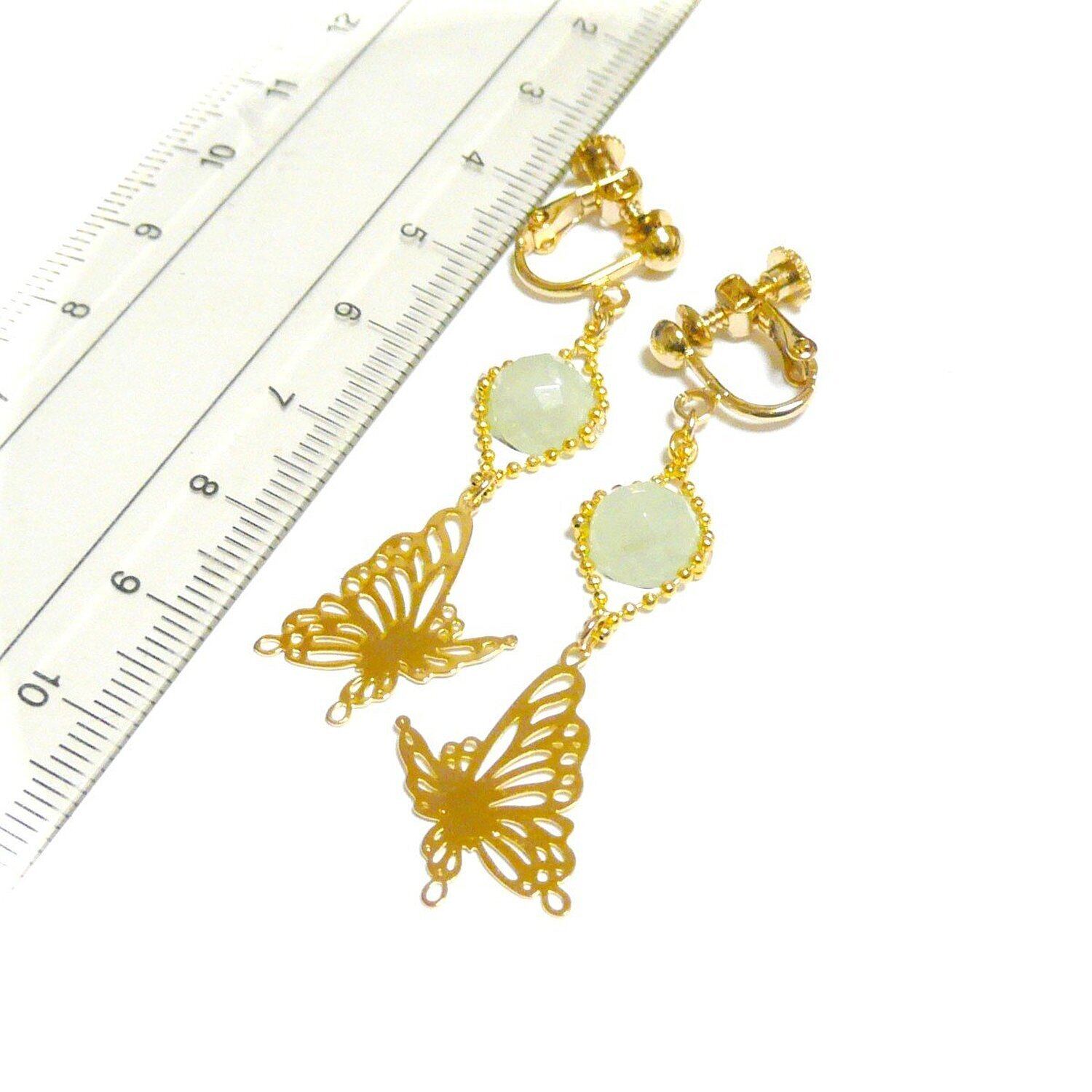 プレナイト イヤリング 蝶 バタフライ 葡萄石 金色 ゴールドカラー 【 きらめき アゲハ 】