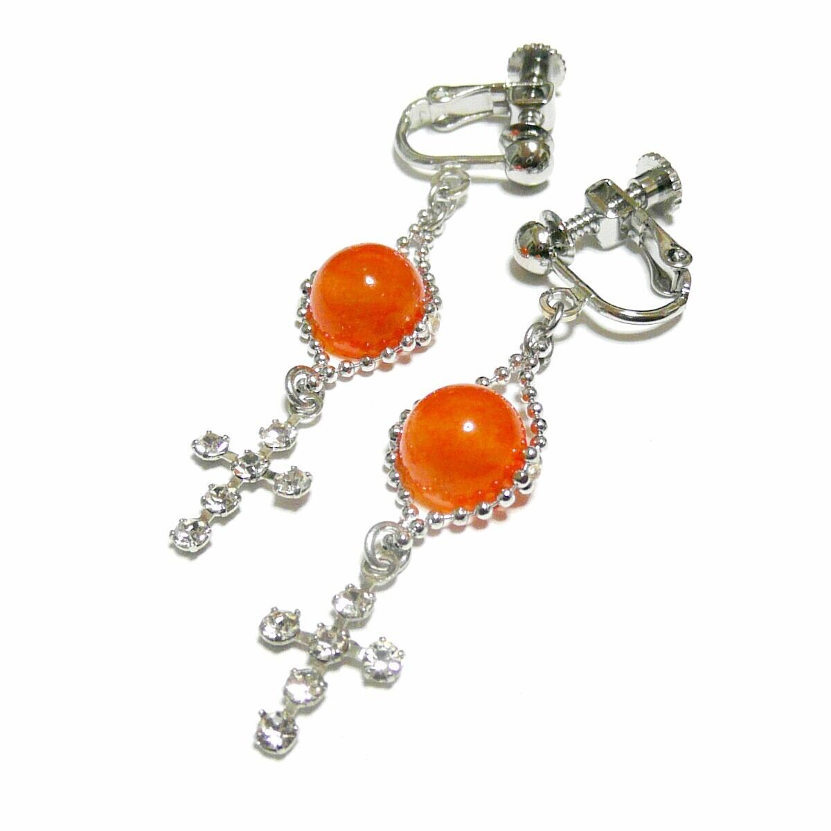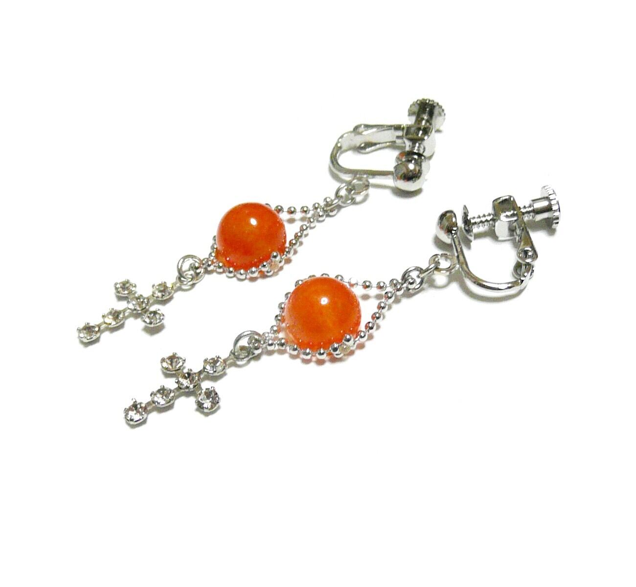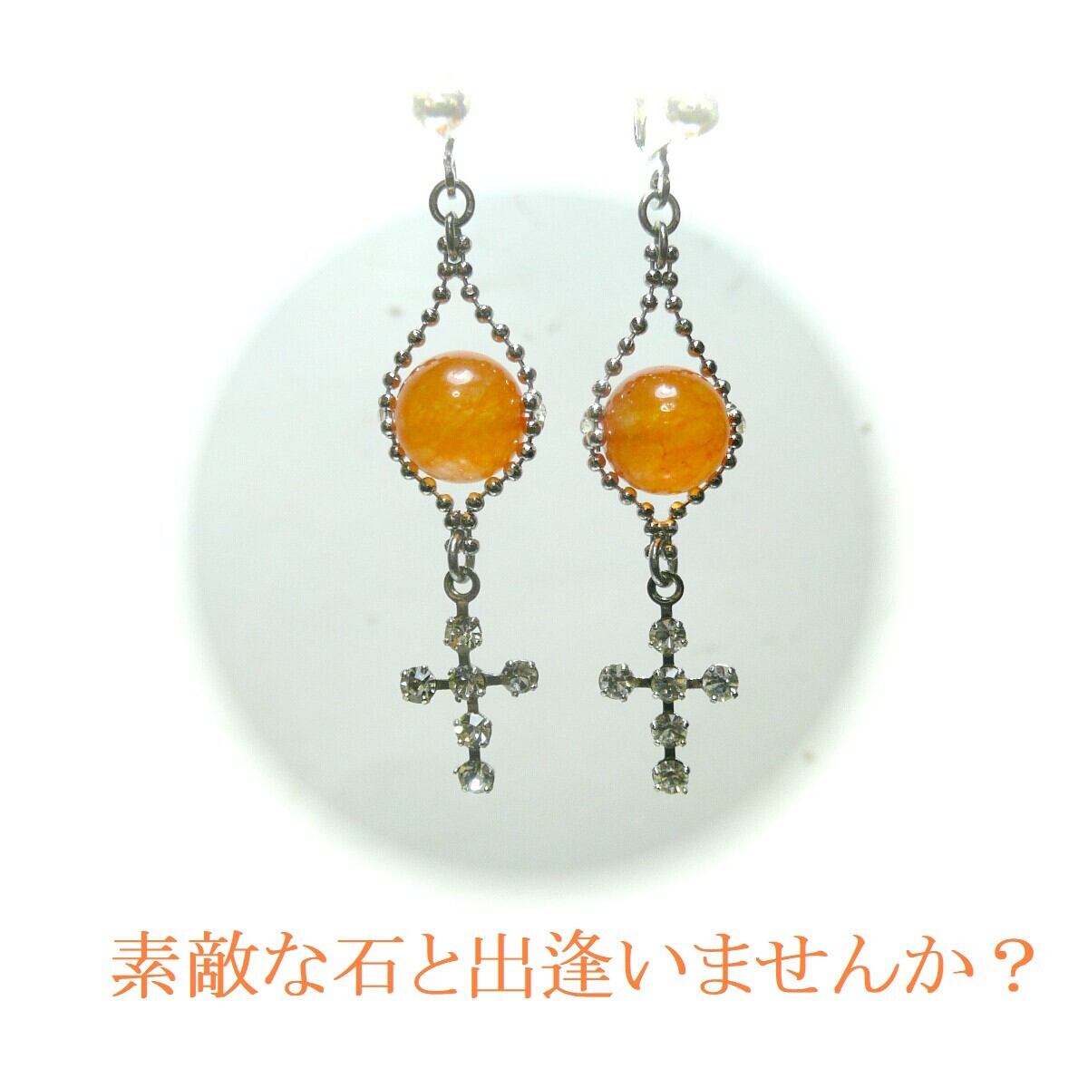 「 ピアス オレンジカルセドニー 繊細 十字架 」と検索なさりご覧下さい。
