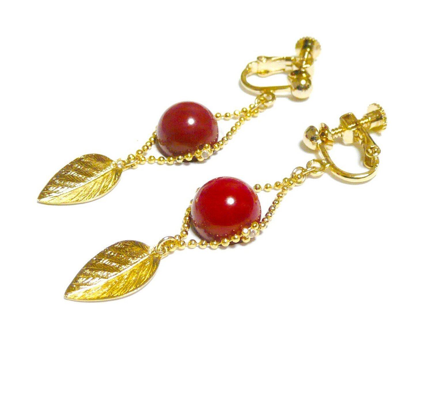 「 赤珊瑚 葉っぱ ピアス 」と検索なさりご覧下さい。