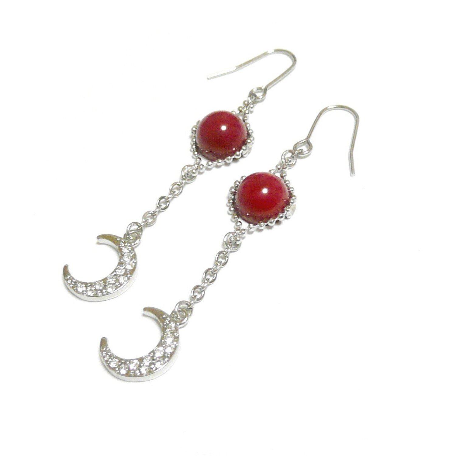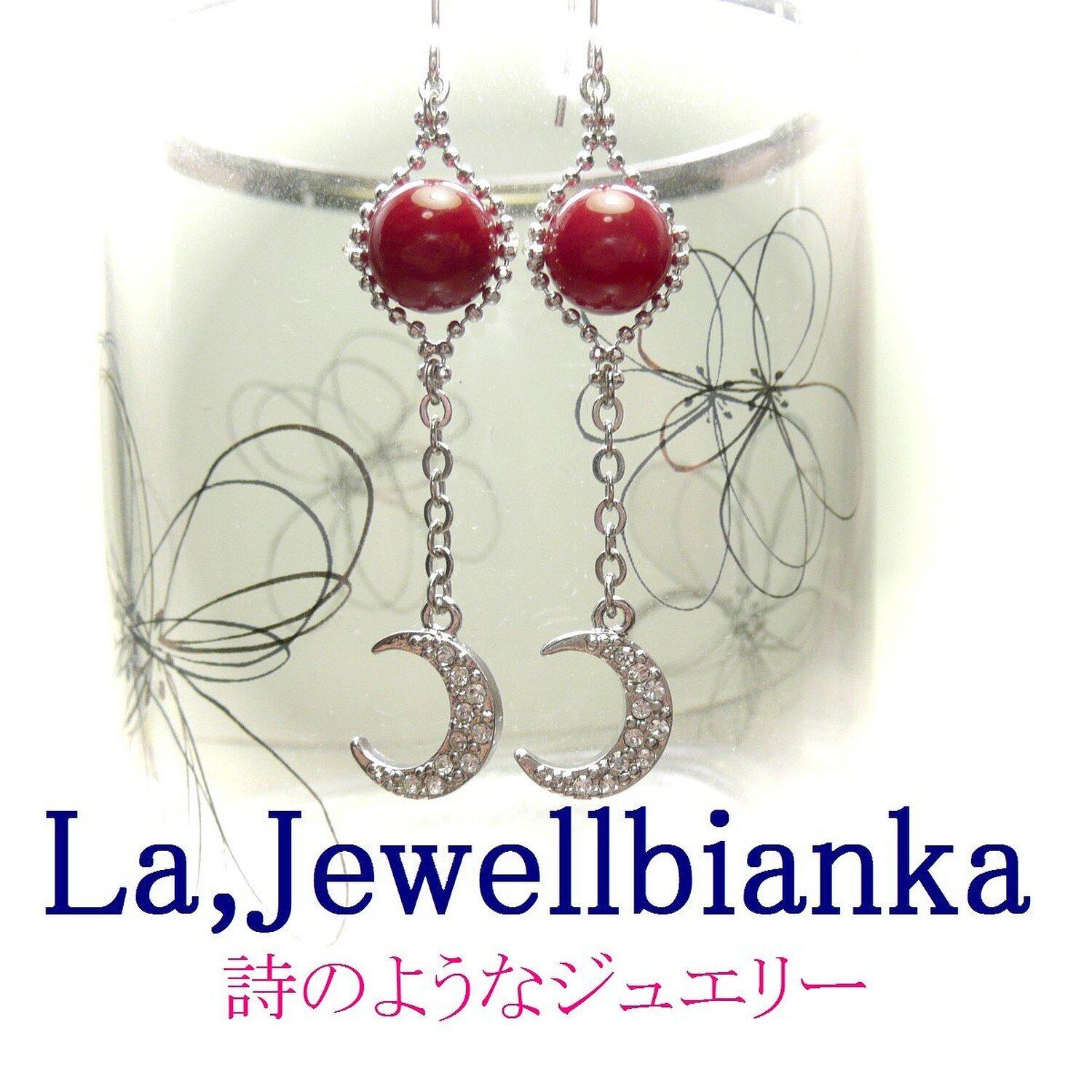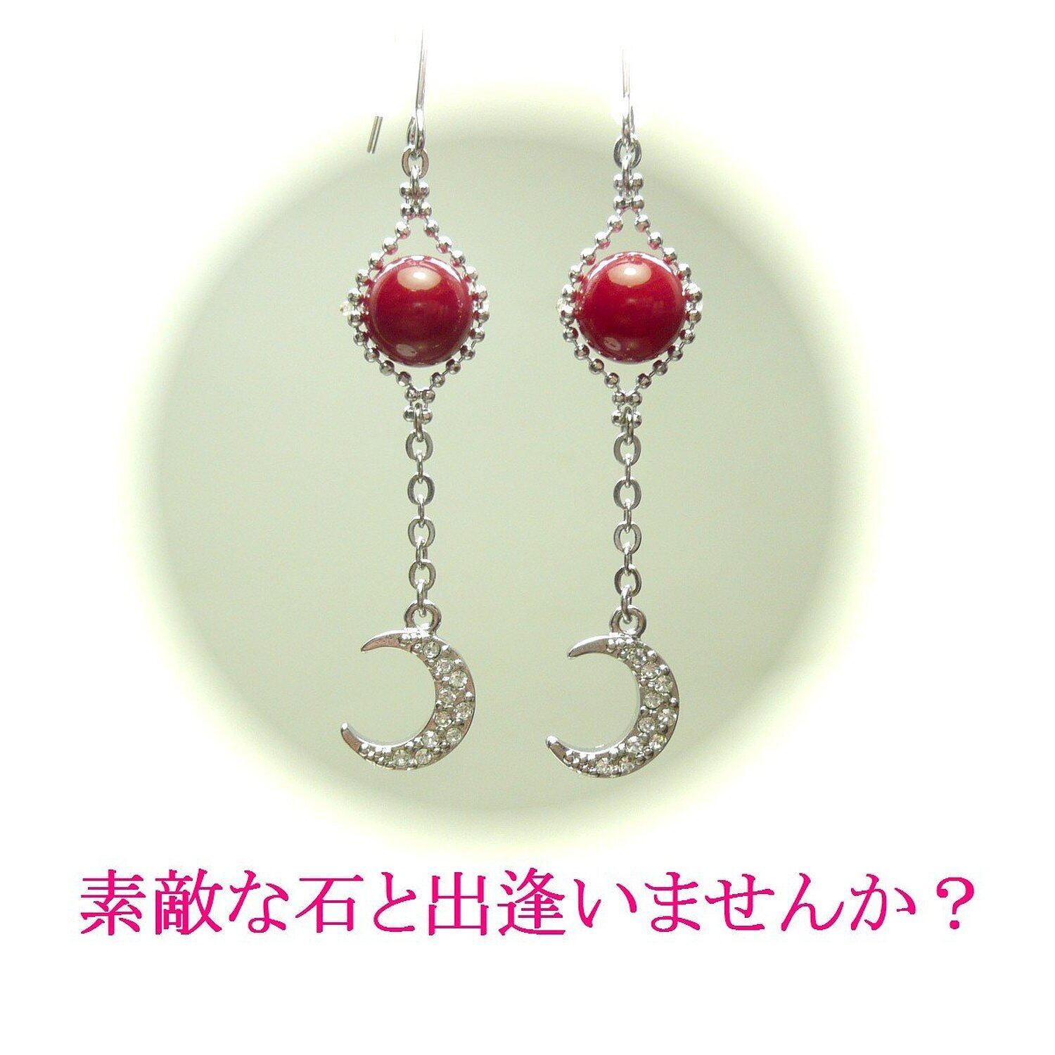 「 赤珊瑚 三日月 イヤリング 」と検索なさりご覧下さい。