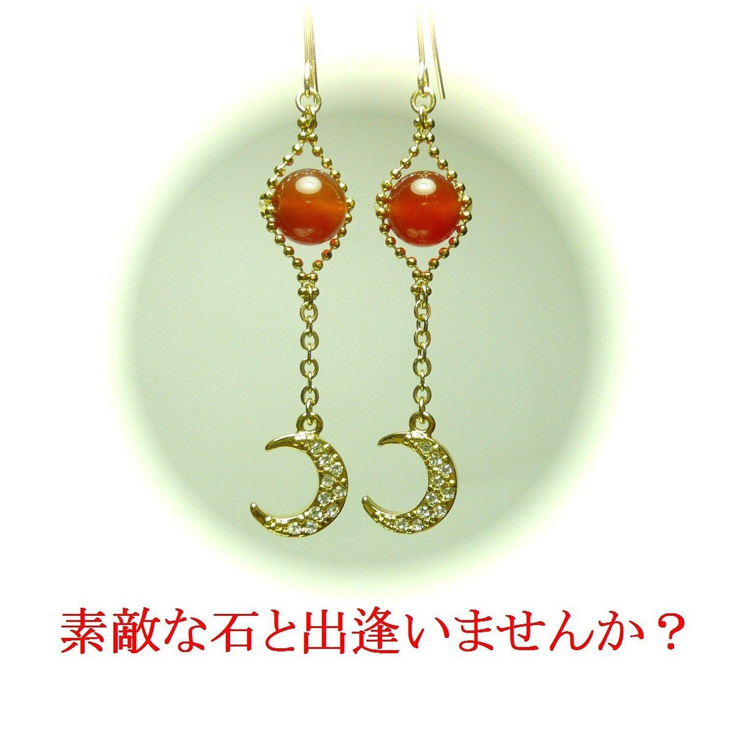 「 カーネリアン 三日月 イヤリング 」と検索なさりご覧下さい。