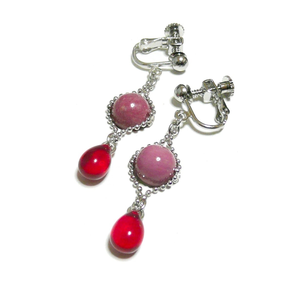 【 ロードナイトイヤリング・琥珀イヤリング 】