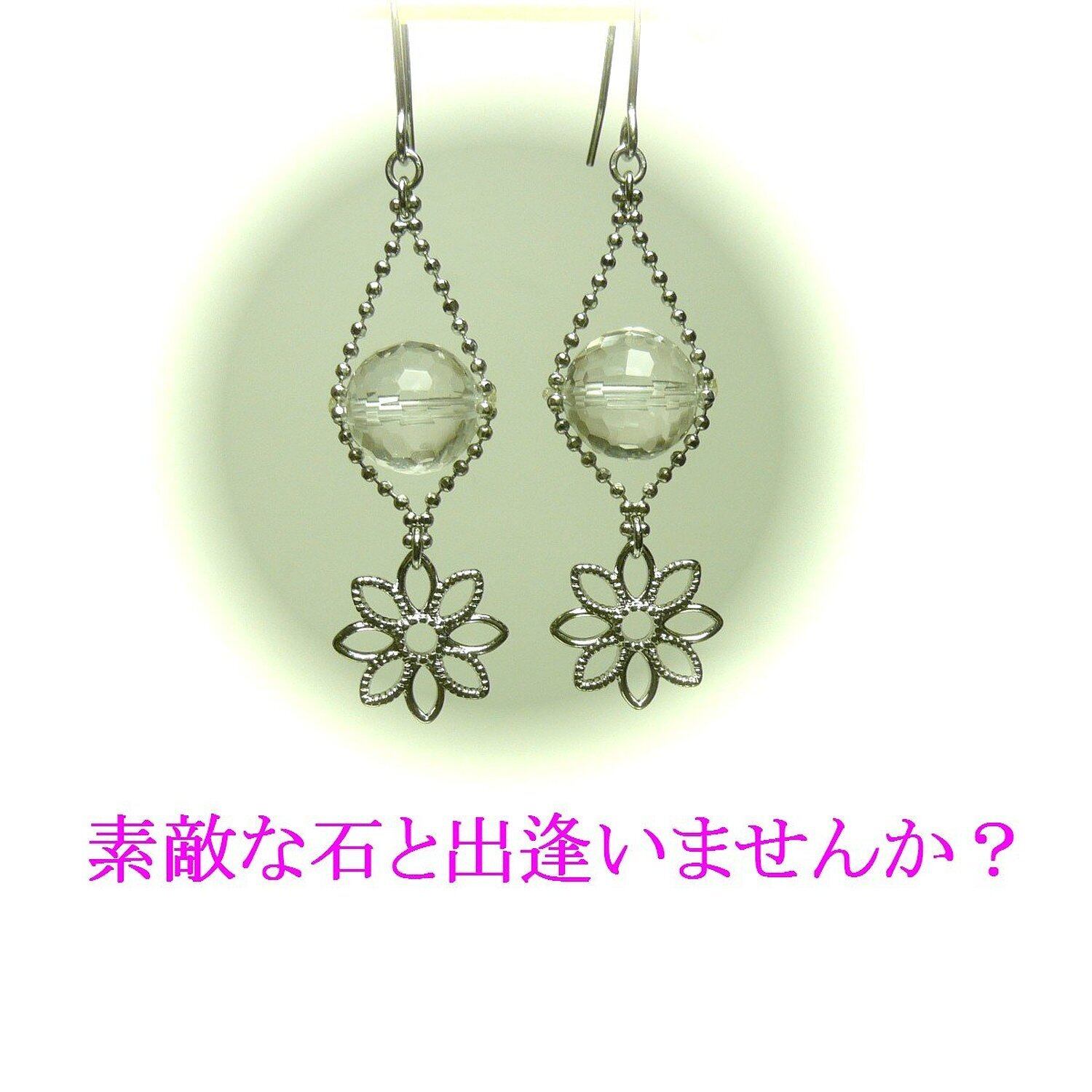 「 水晶 イヤリング すかし フラワー 」で検索なさりご覧下さい。