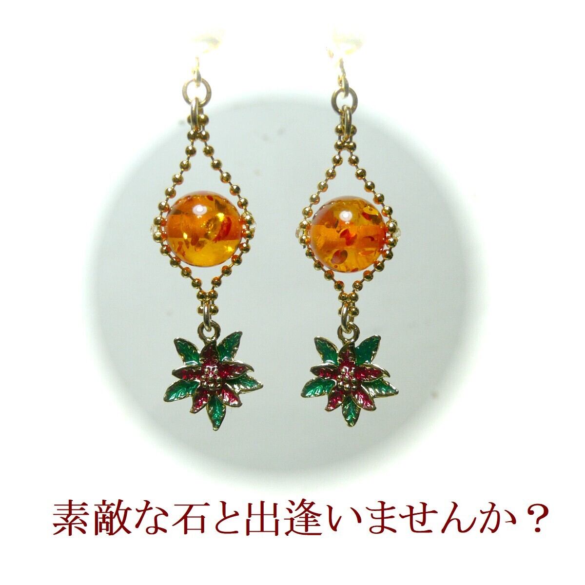 「 琥珀 ポインセチア ピアス 」と検索なさりご覧下さい。