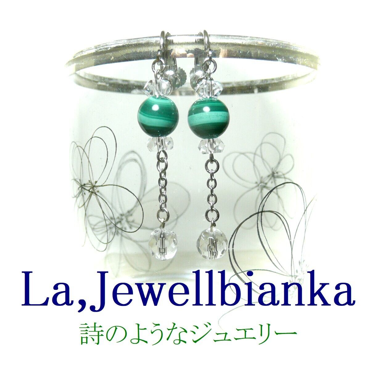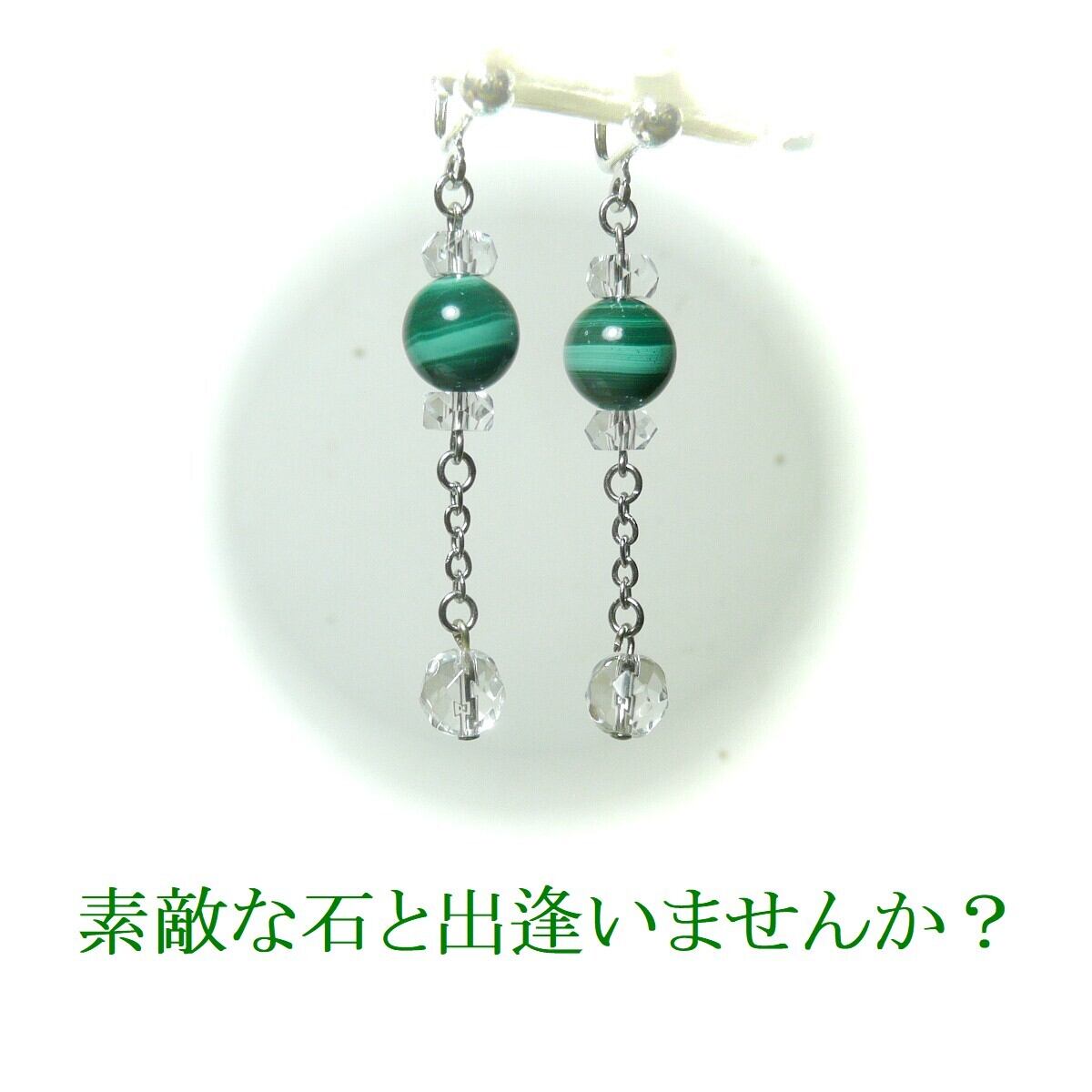 「 マラカイト 水晶 ピアス シャンソニエ 」と検索なさりご覧下さい。