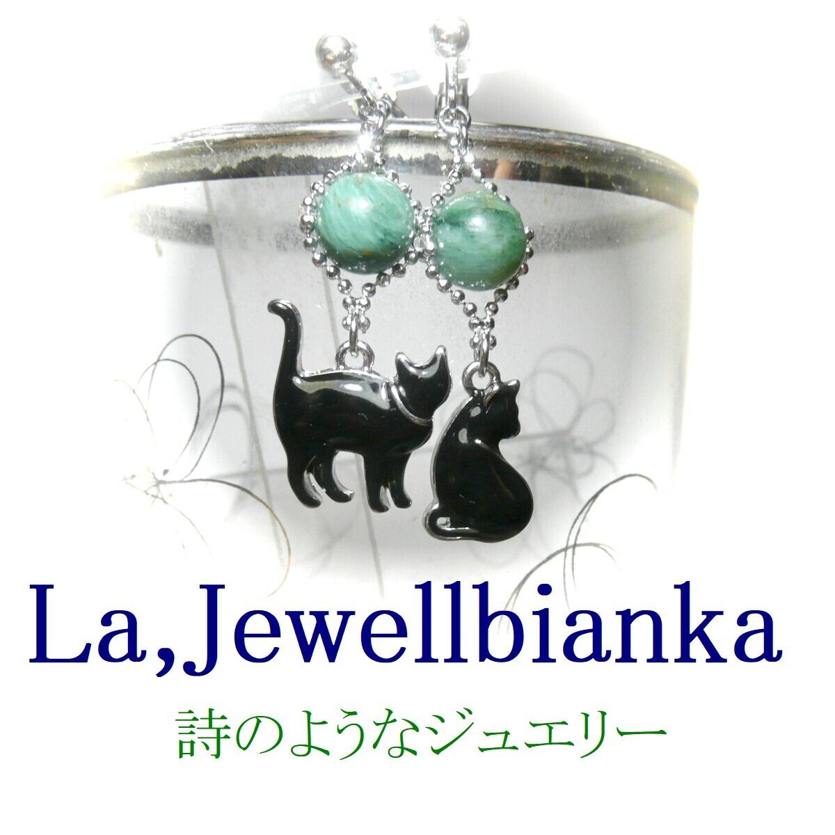 表情豊かな天然石エメラルドと二匹の黒猫が、
