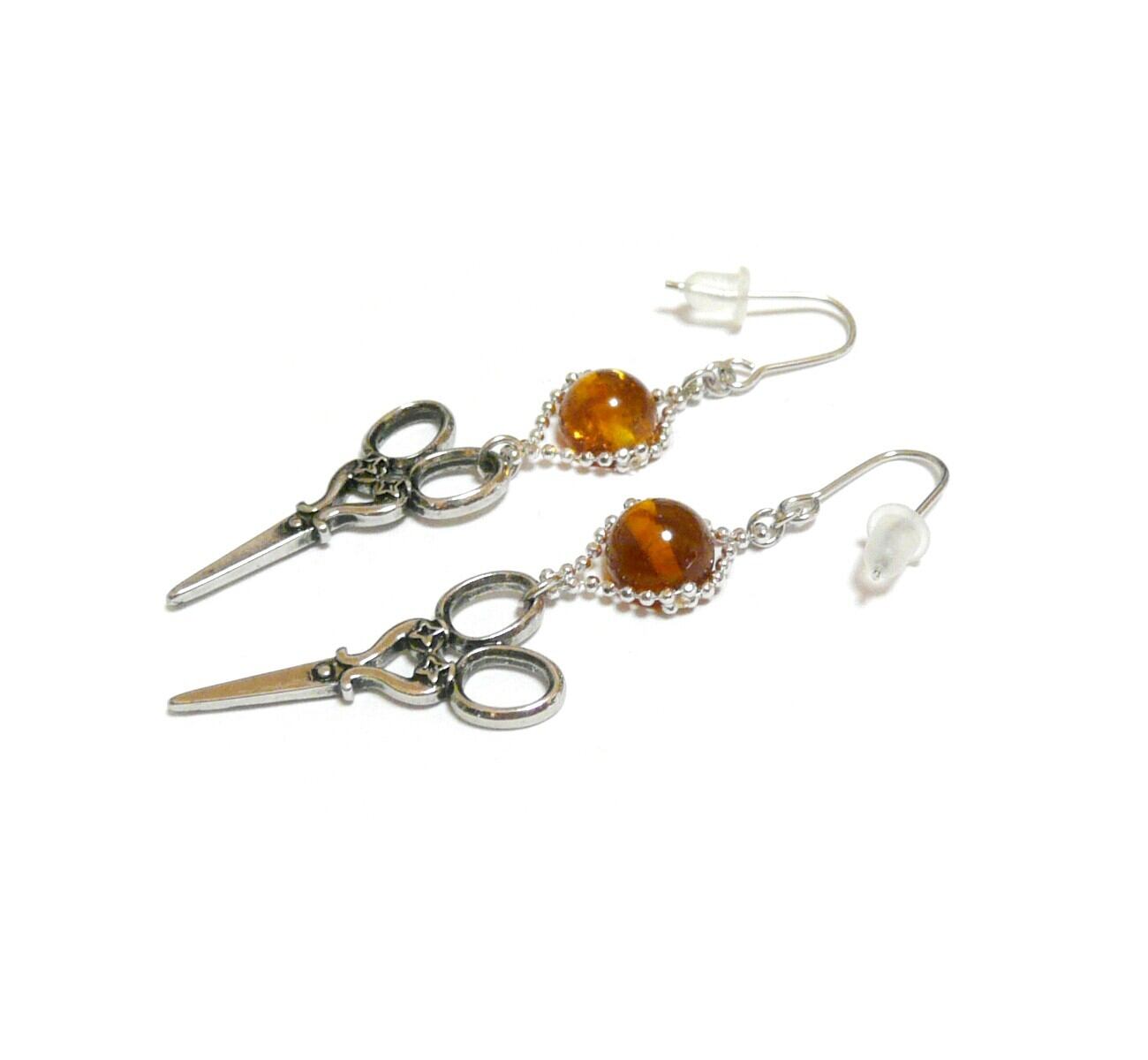 「 琥珀 イヤリング 鋏 はさみ ハサミ チャーム 」と検索なさりご覧下さい。
