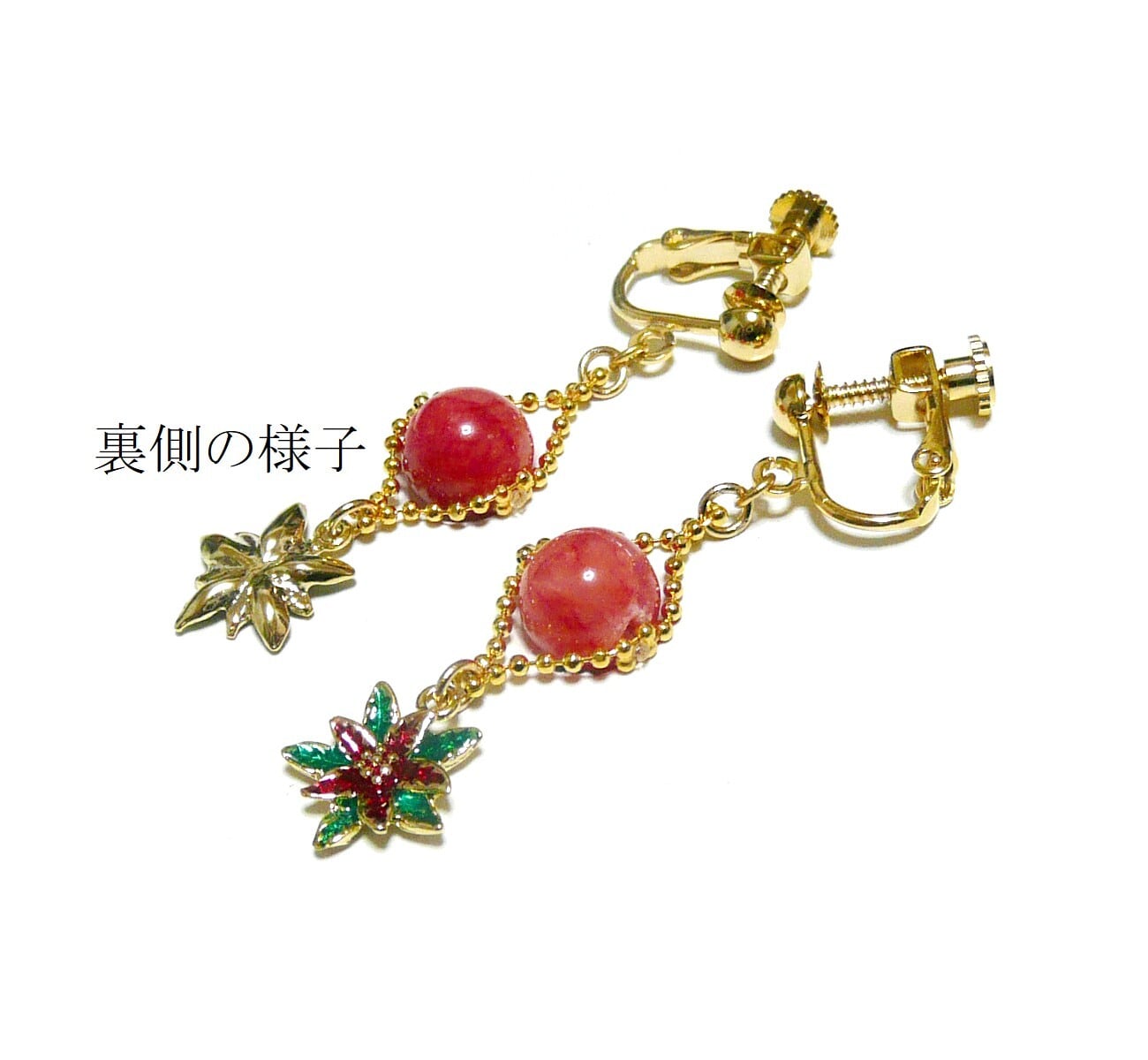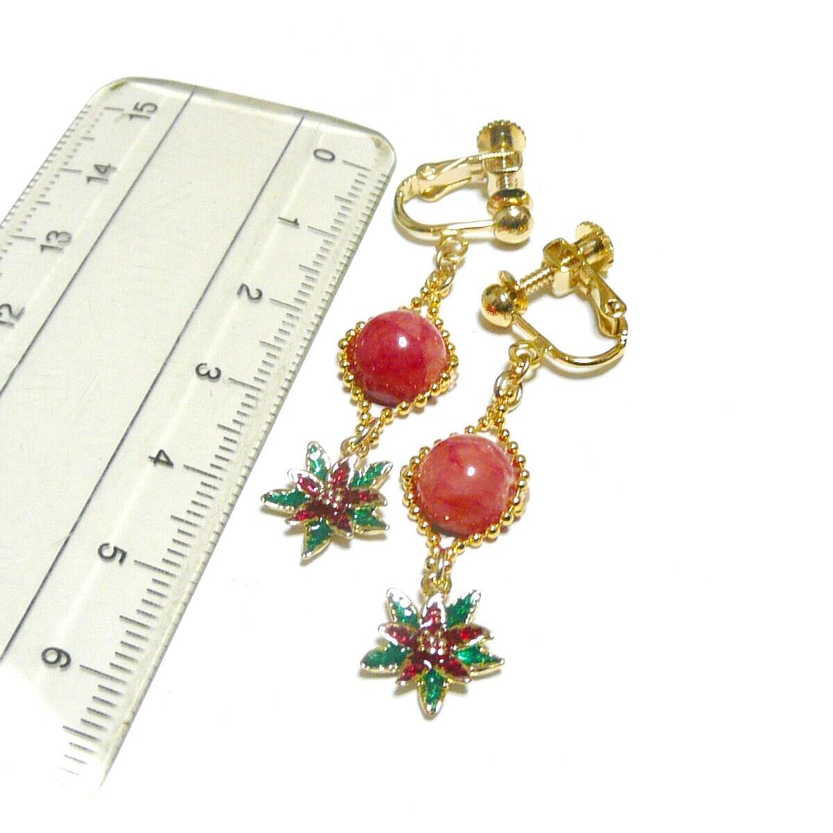 ポインセチアチャームと共に揺れるイヤリングです。