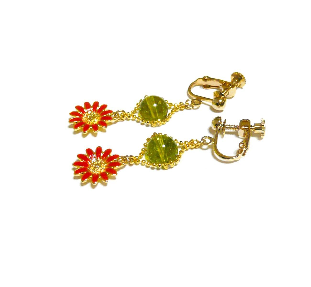 マーガレット ペリドット イヤリング 橄欖石 花 フラワーモチーフ オリーブ 金色 ゴールドカラー