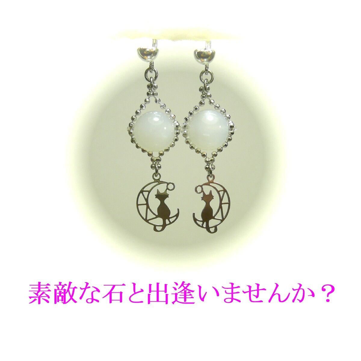 キュートな月猫のプレートと共に揺れるイヤリングです。