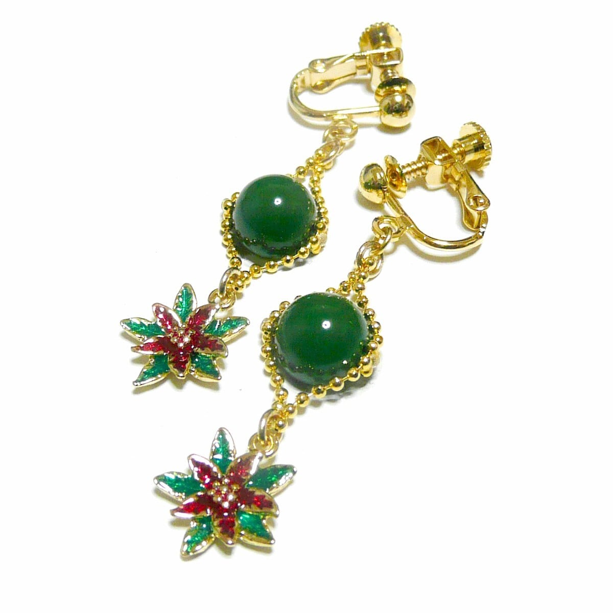 「 翡翠 ピアス ポインセチア 」と検索なさりご覧下さい。