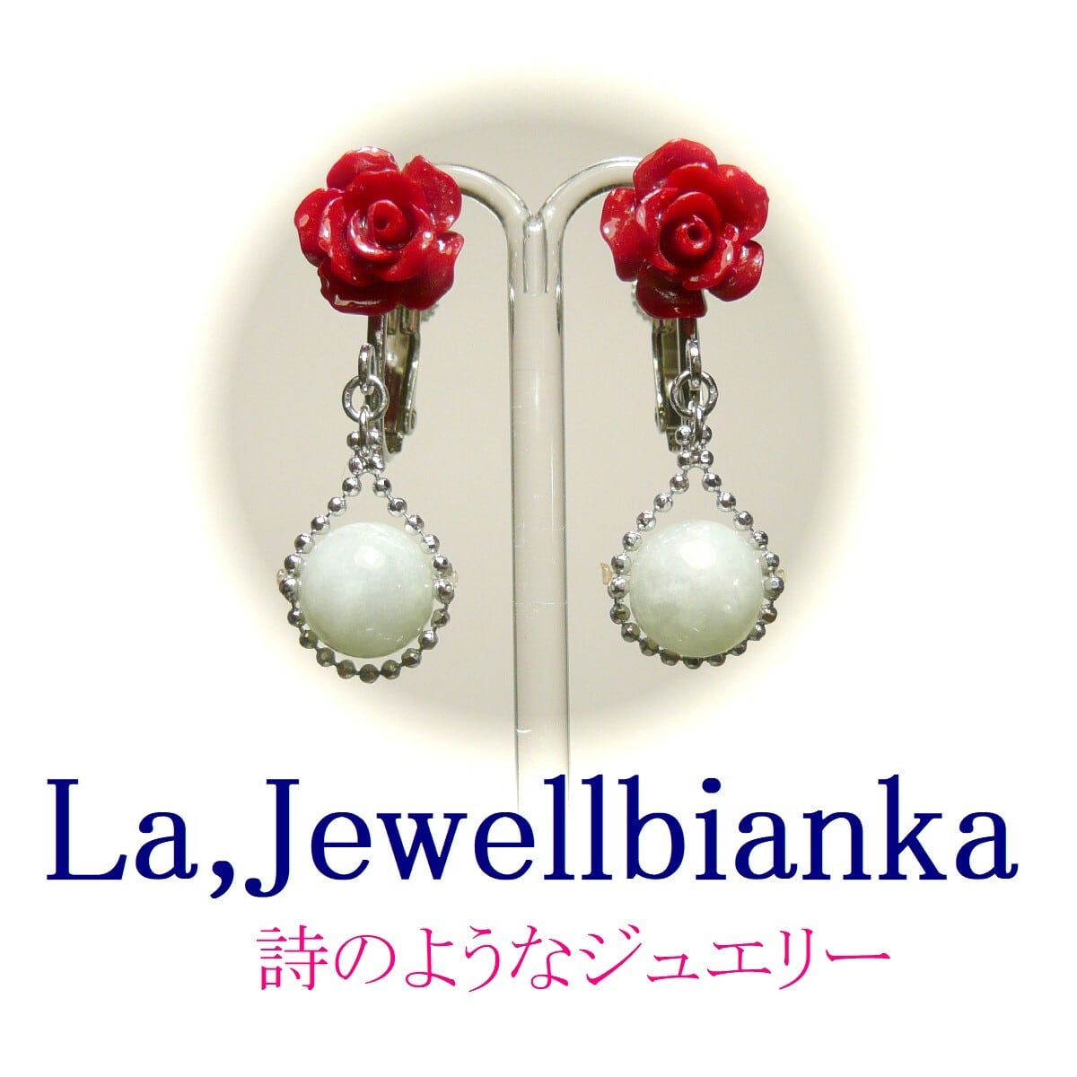 鮮やかな真紅に染められたサンゴの薔薇カット珠と丸珠の翡翠硬玉、