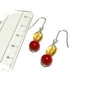 オーバルカットのシトリンと赤珊瑚が繋がるピアスです。