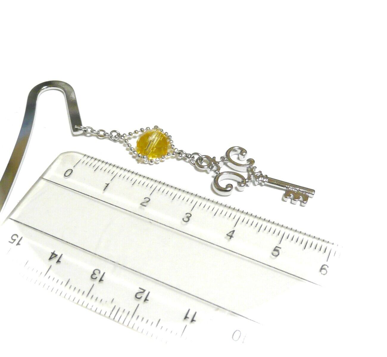 カギのチャームと共に揺れるブックマーカーです。