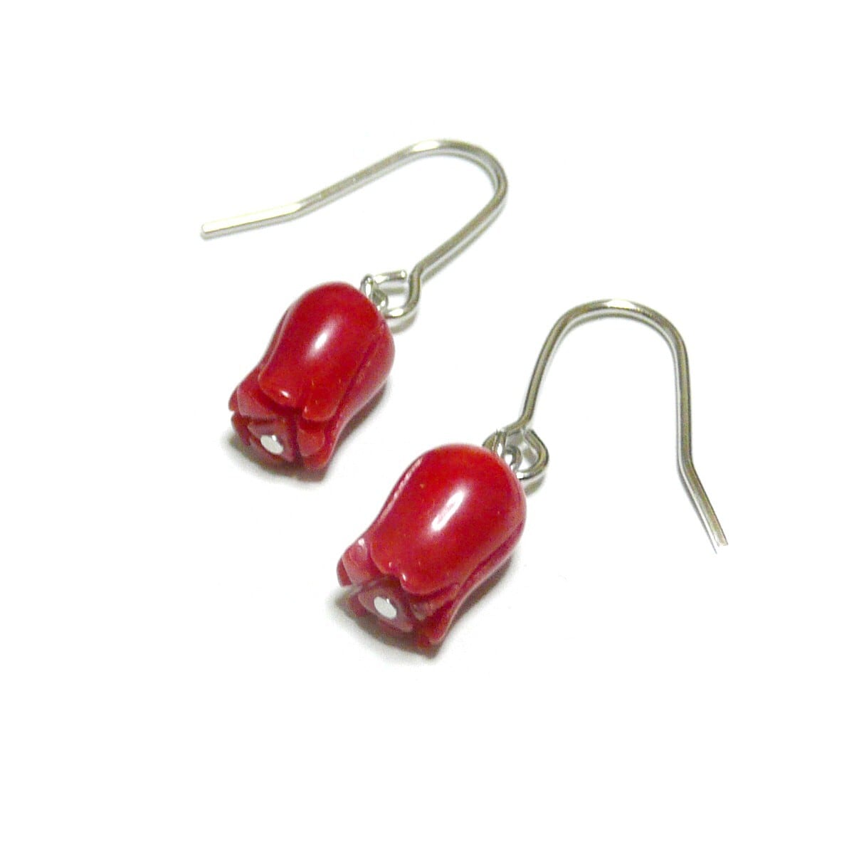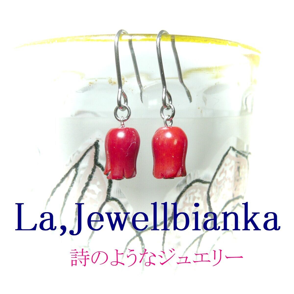 「 赤珊瑚 イヤリング 鈴蘭 花 まとい 」と検索なさりご覧下さい。
