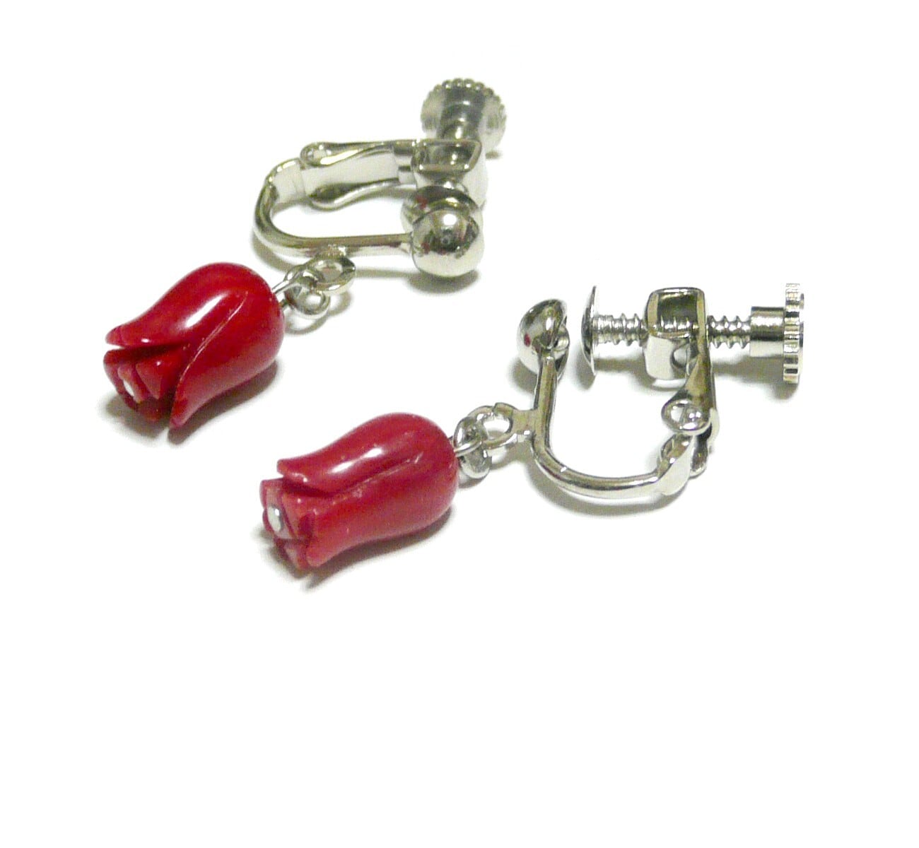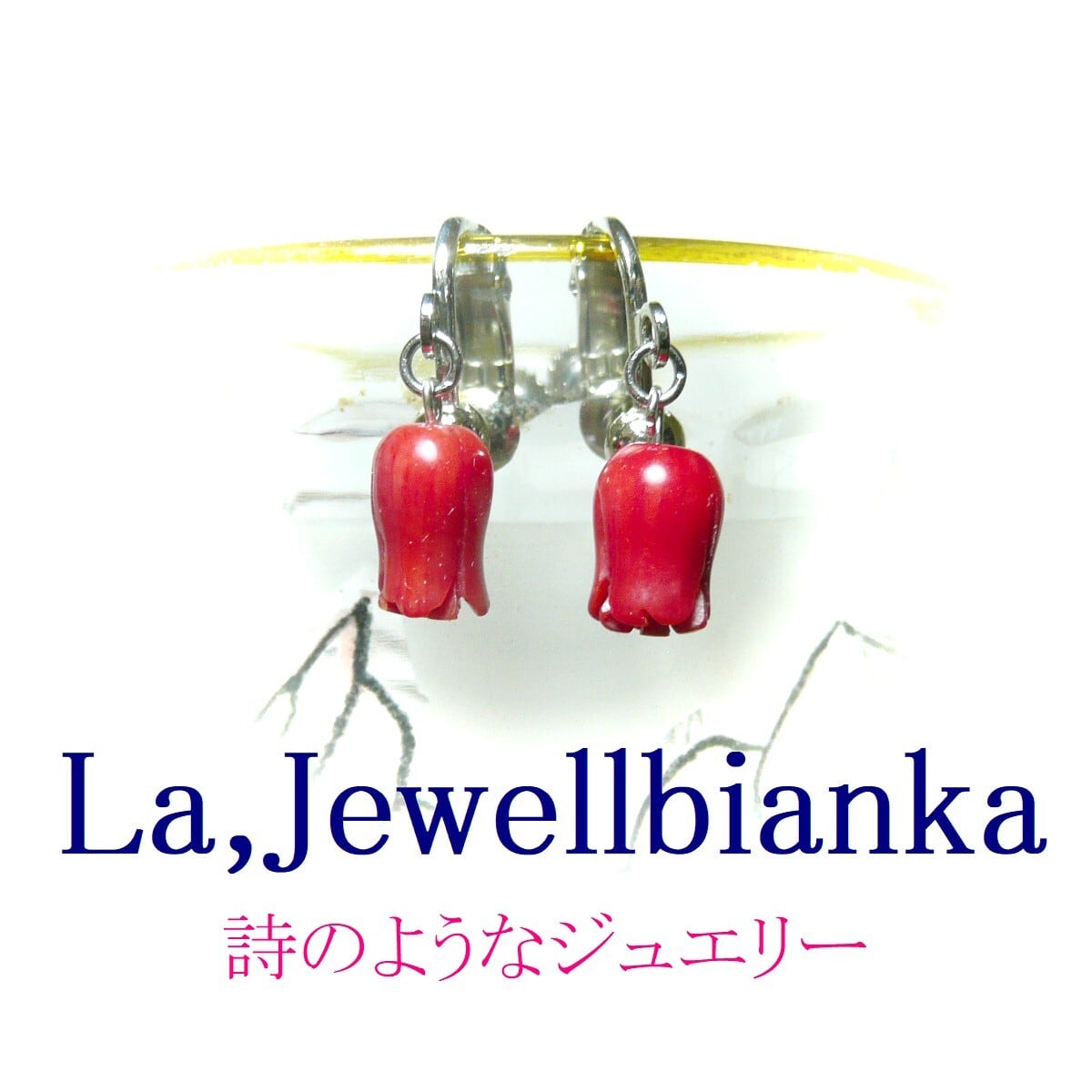 「 赤珊瑚 ピアス 鈴蘭 花 まとい 」と検索なさりご覧下さい。