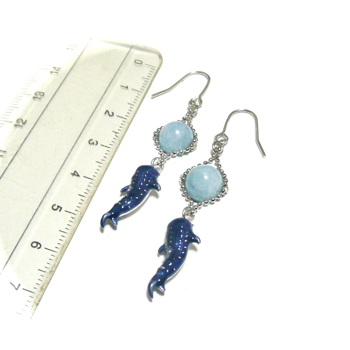 キュートなジンベエザメのチャームと共に揺れるピアスです。