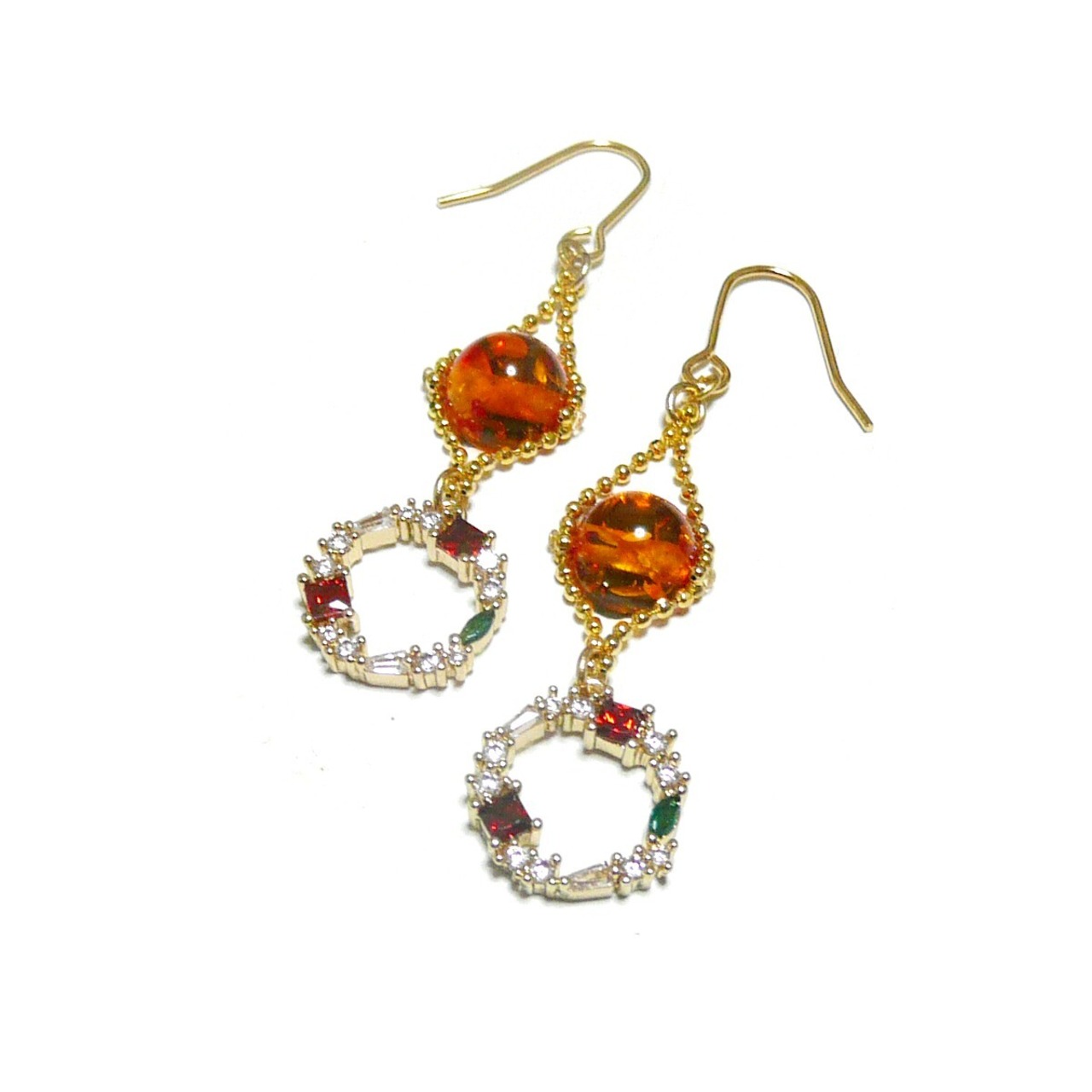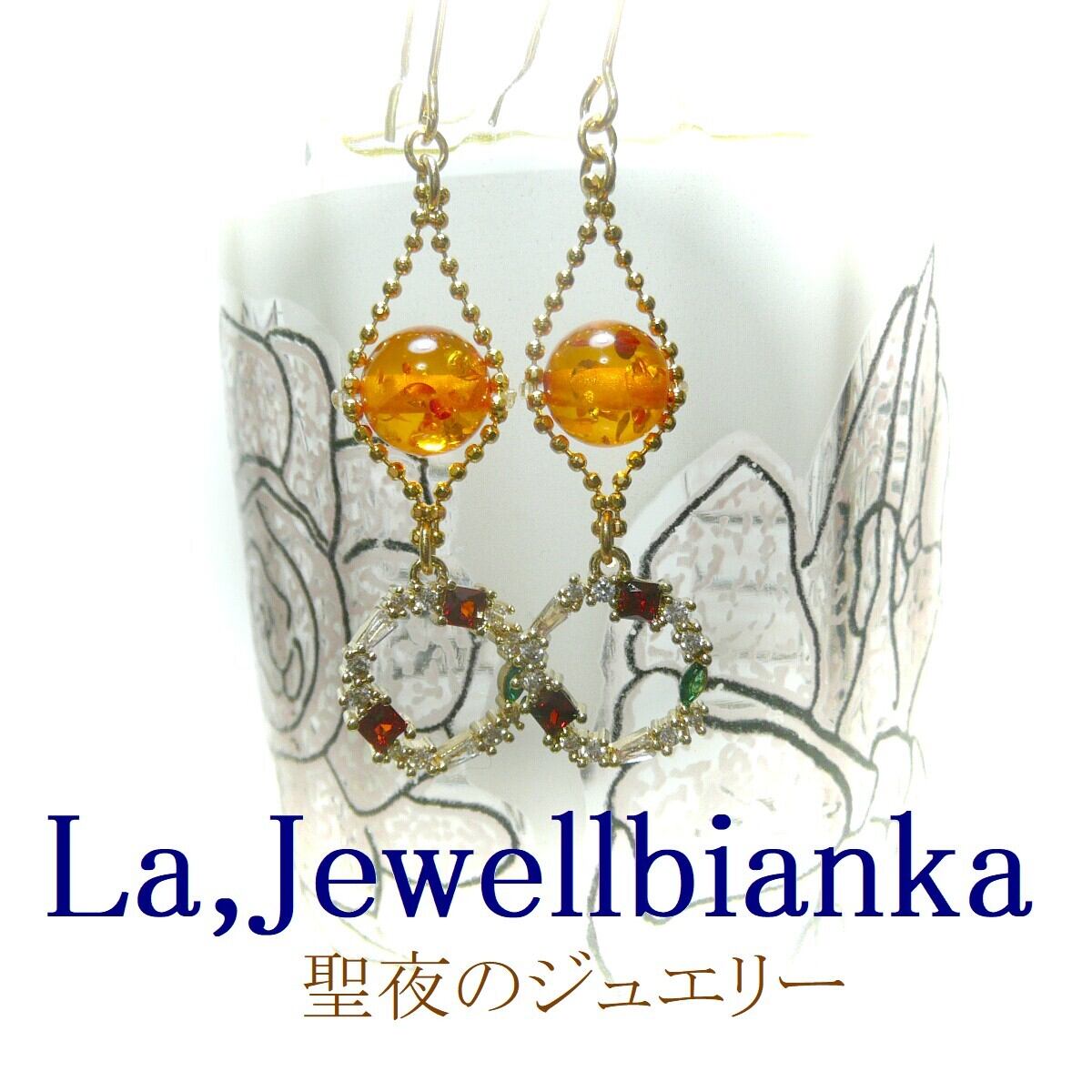 「 イヤリング クリスマスリース 琥珀 」と検索なさりご覧下さい。