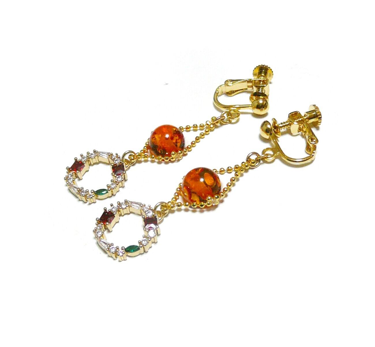「 ピアス クリスマスリース 琥珀 」と検索なさりご覧下さい。