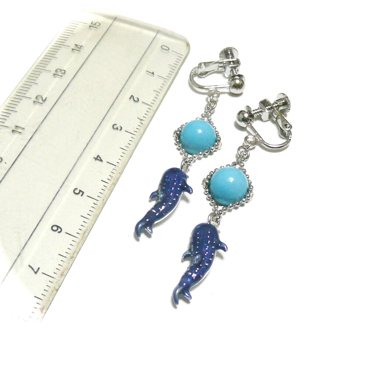 キュートなジンベエザメのチャームと共に揺れるイヤリングです。