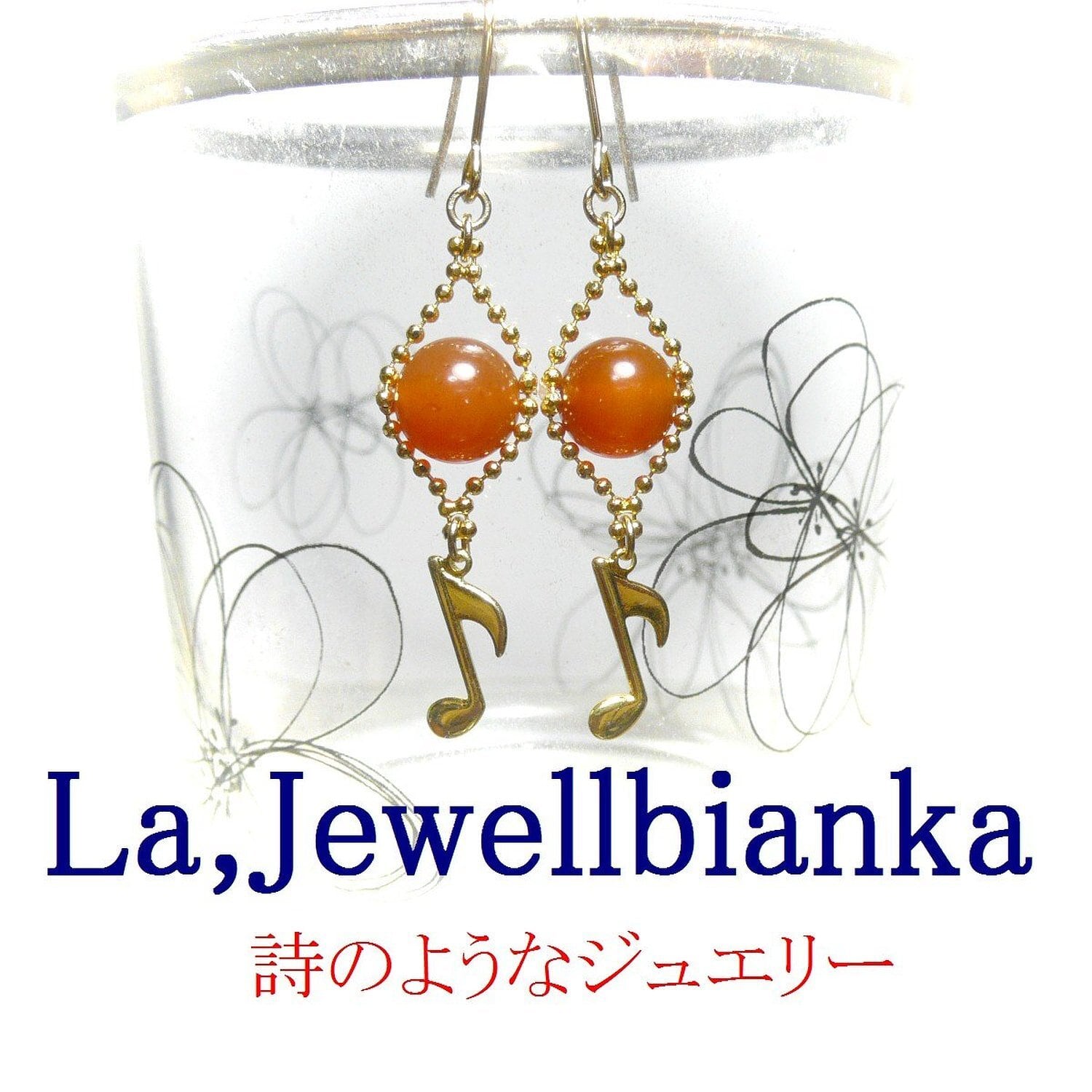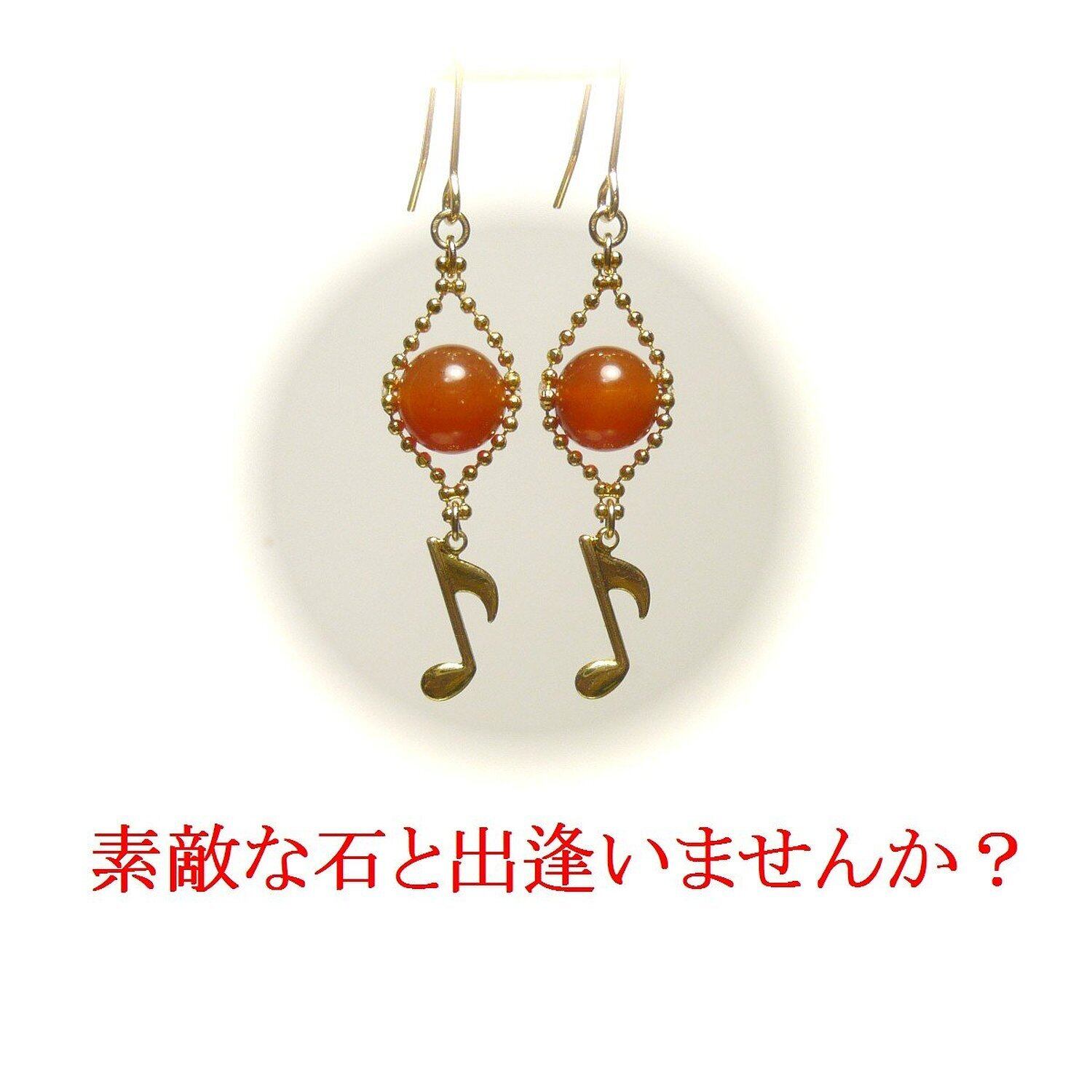 「 カーネリアン イヤリング 音符 」と検索なさりご覧下さい。