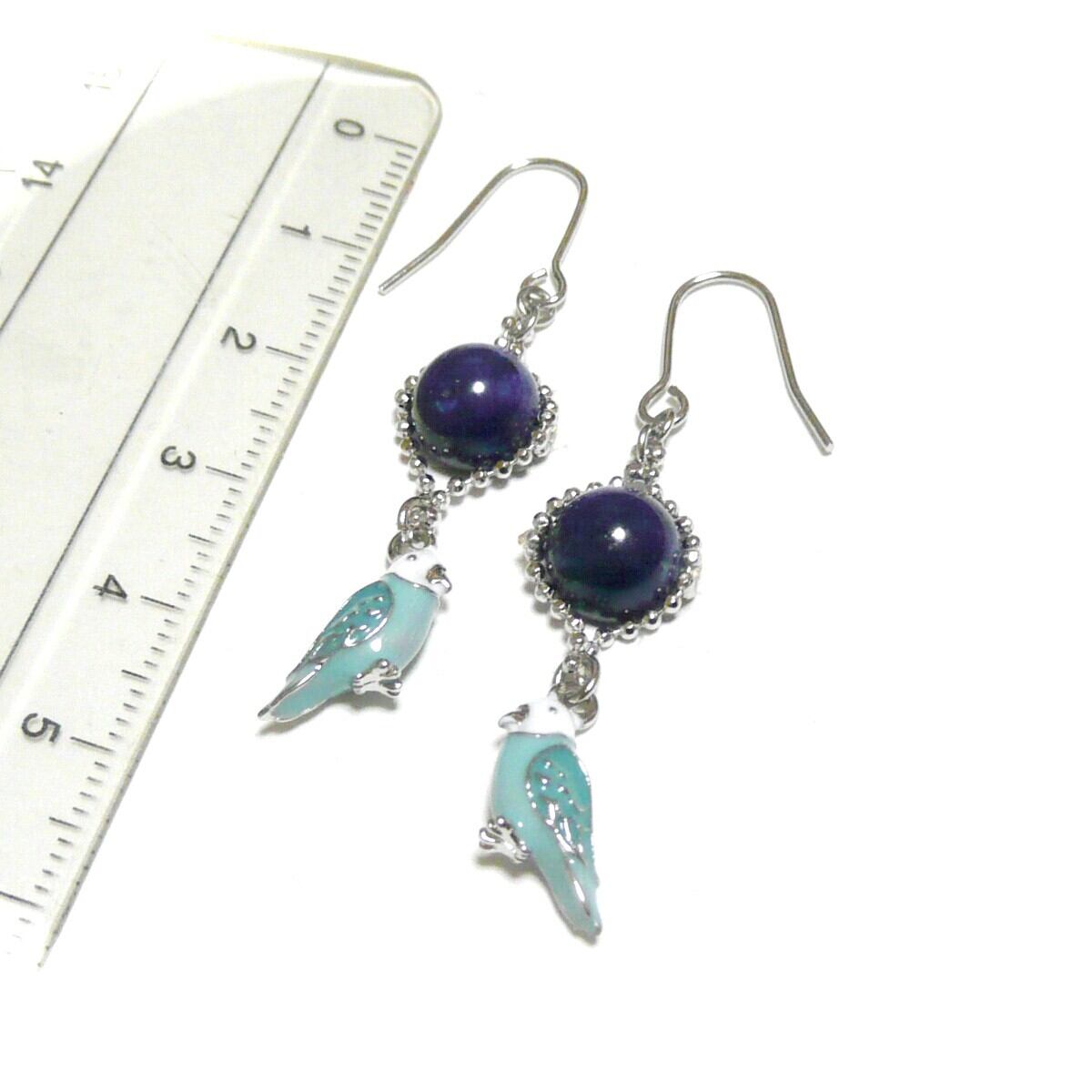 キュートなセキセイインコのチャームと共に揺れるピアスです。