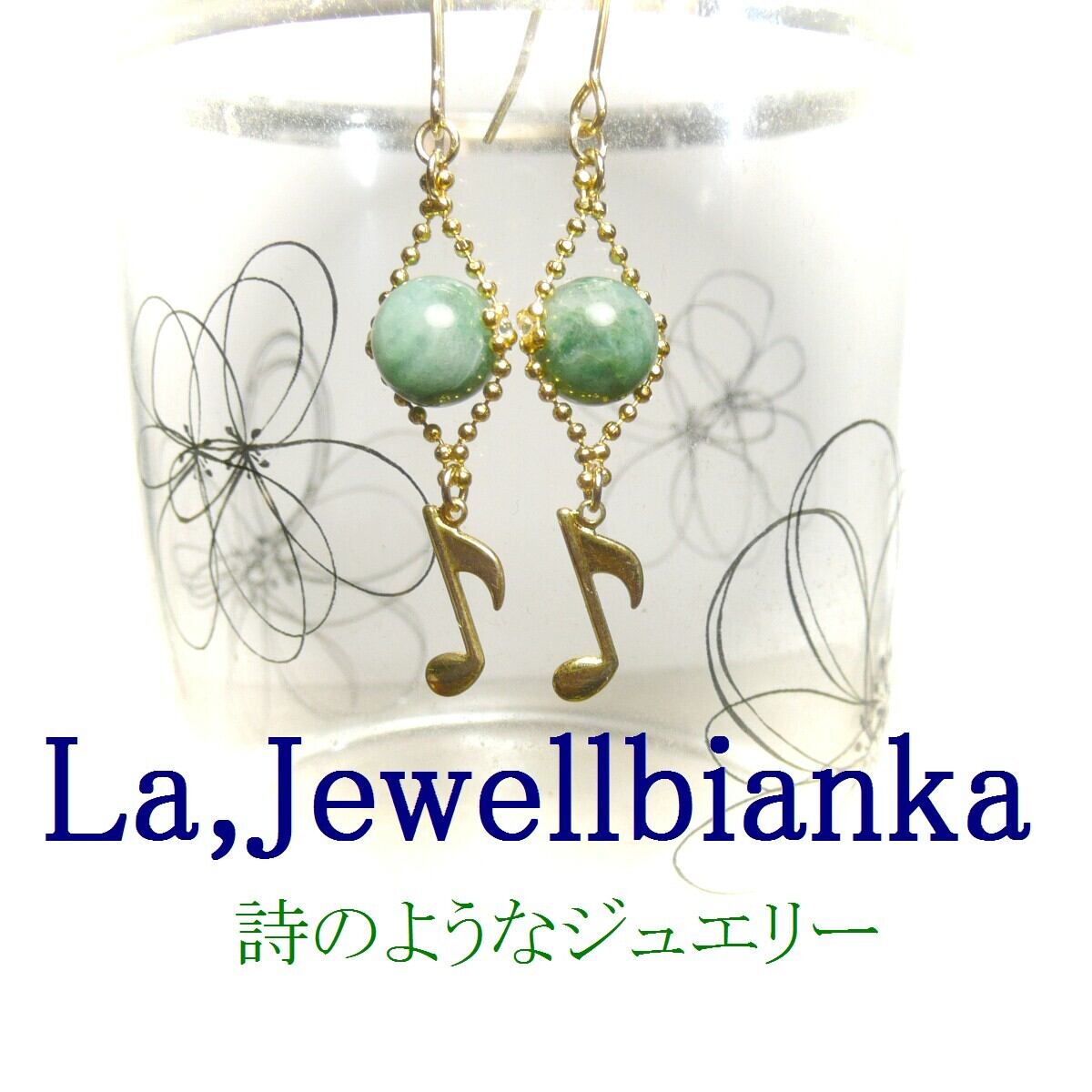 「 エメラルド イヤリング 音符 」と検索なさりご覧下さい。
