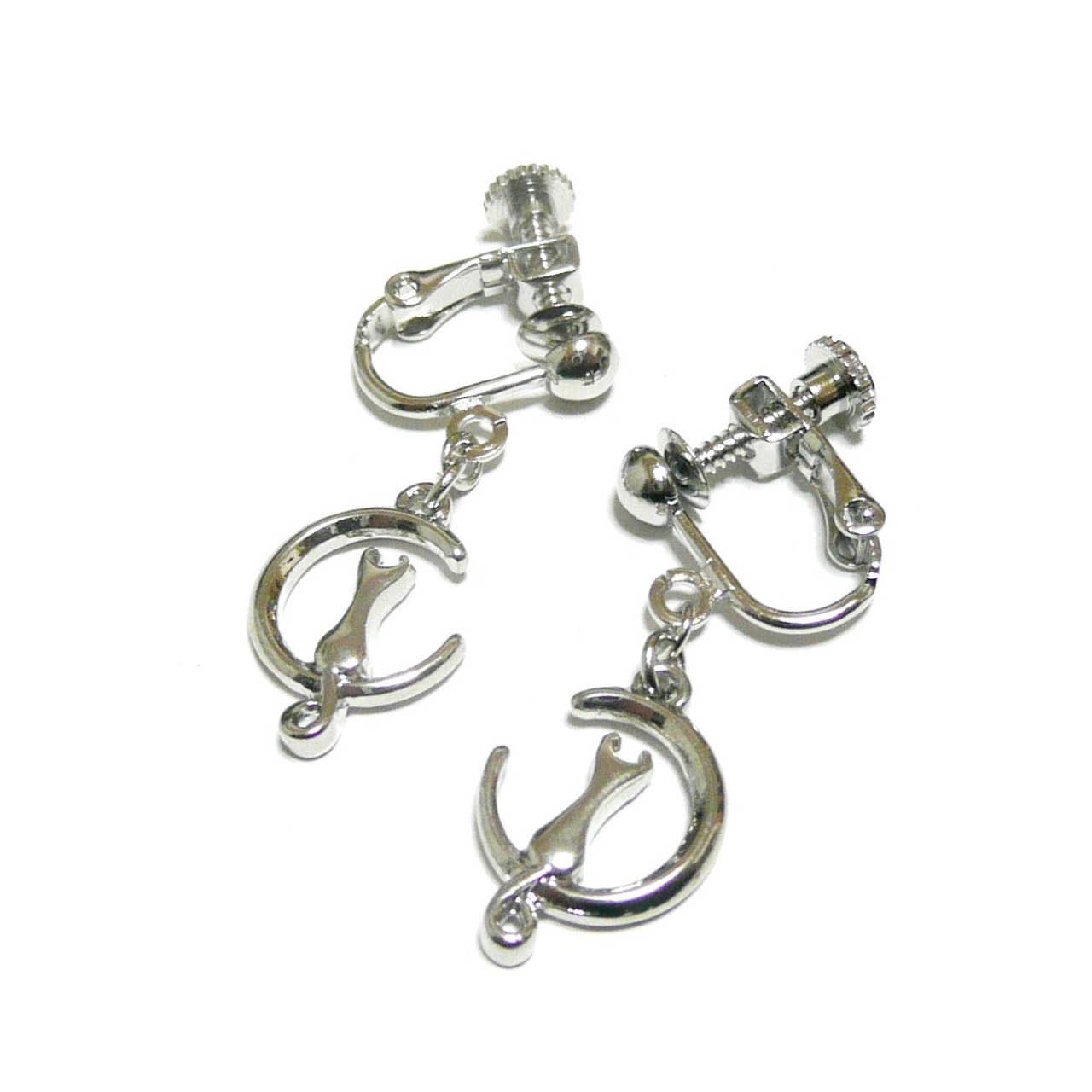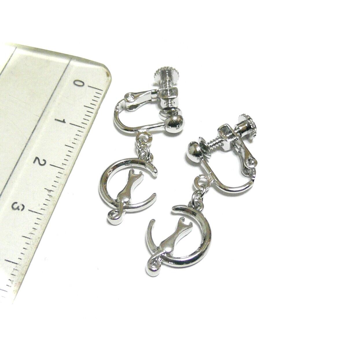 月猫 イヤリング ねこ ムーン チャーム 銀色 シルバーカラー 【 ファンタジー 】