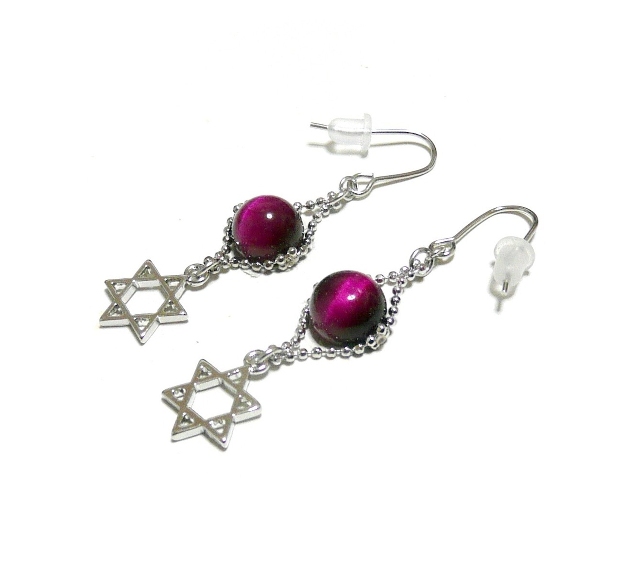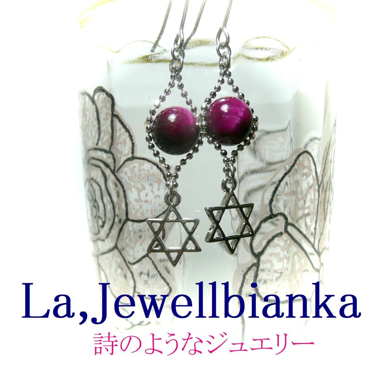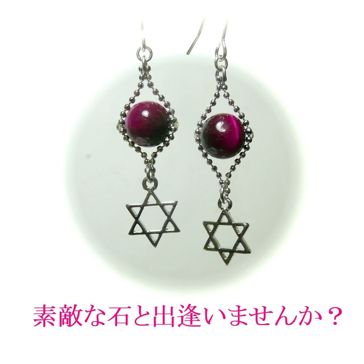 「 マゼンタタイガーアイ イヤリング 六芒星 」と検索なさりご覧下さい。