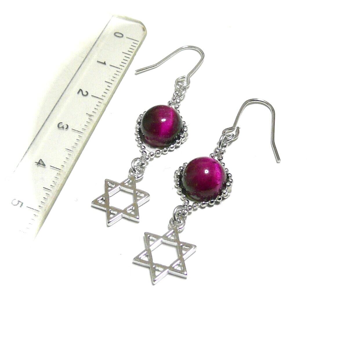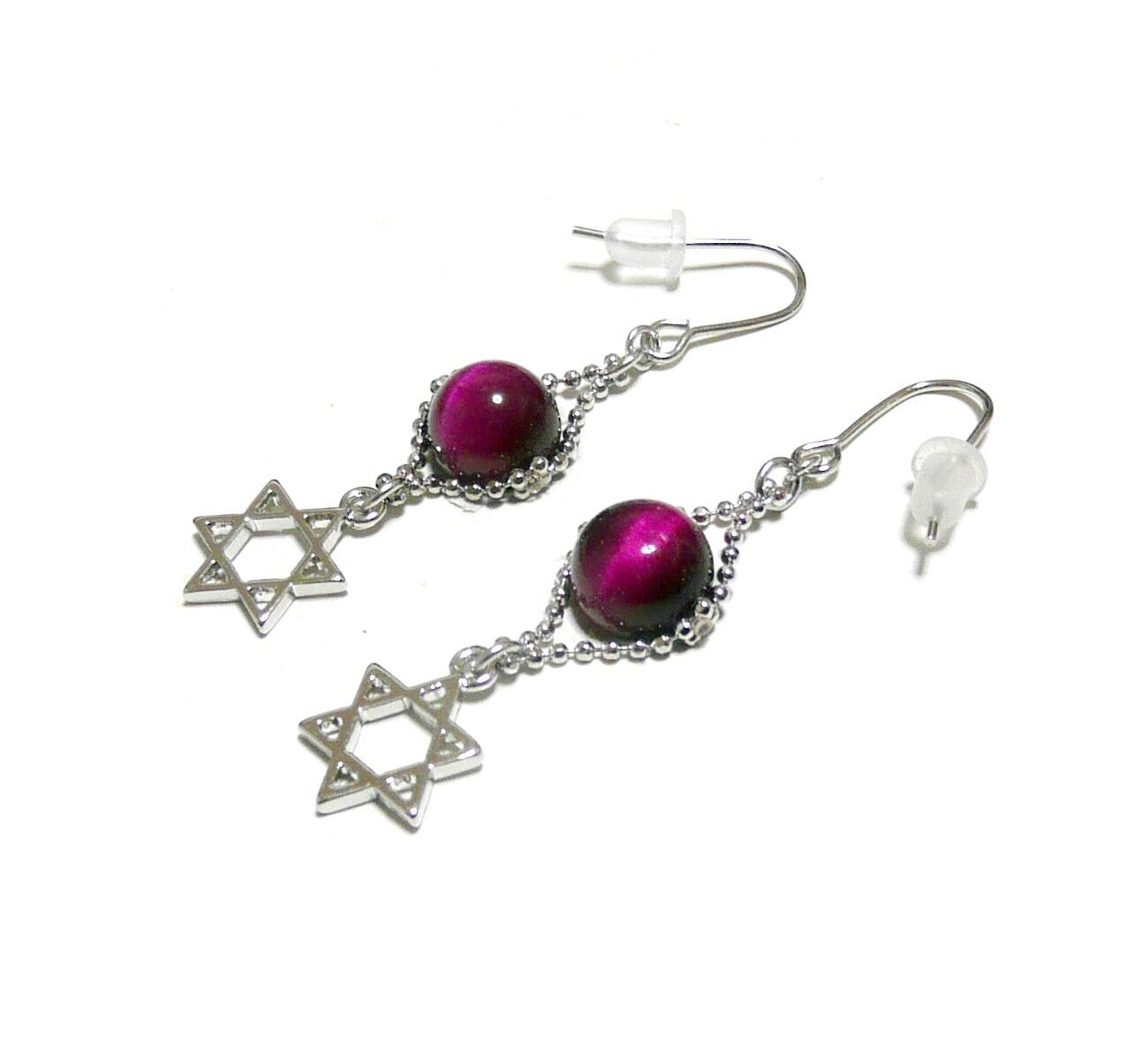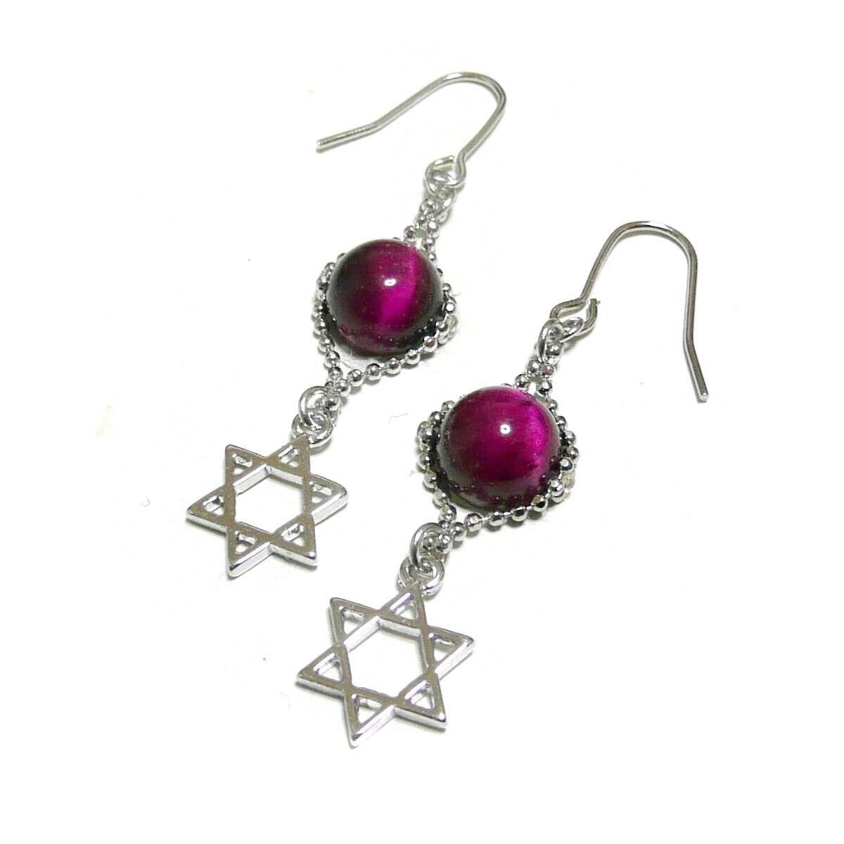 マゼンタタイガーアイ ピアス 六芒星 虎目石 銀色 シルバーカラー 【 聖母の星 】