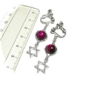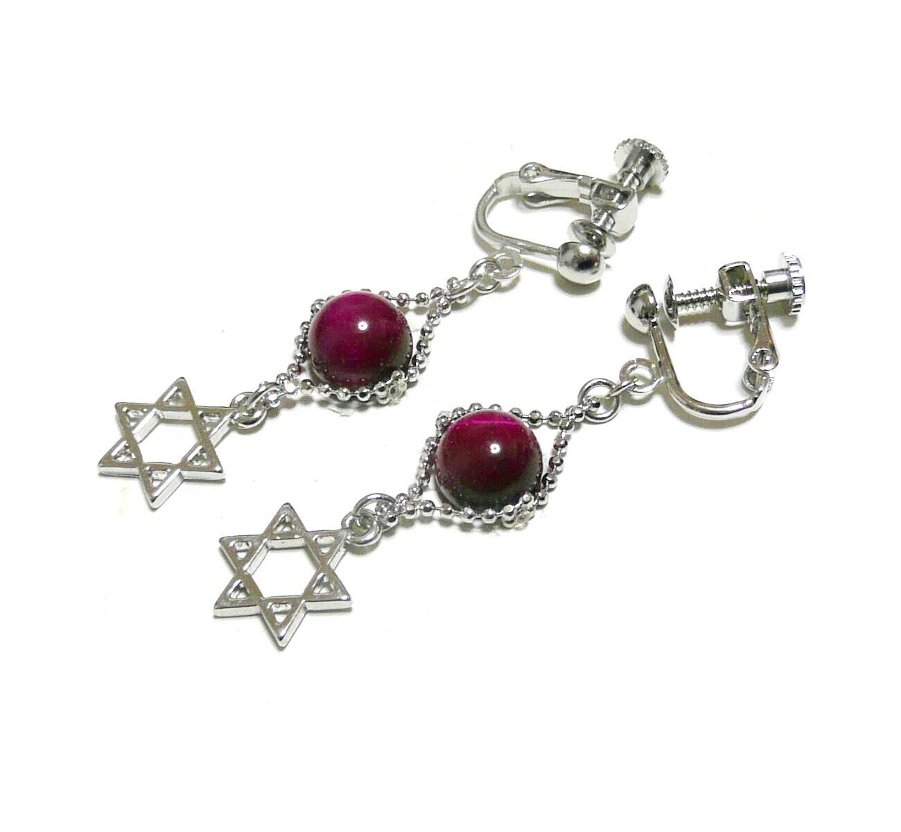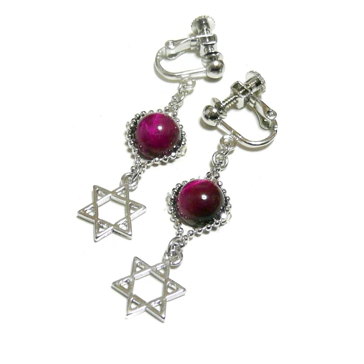 マゼンタタイガーアイ イヤリング 六芒星 虎目石 銀色 シルバーカラー 【 聖母の星 】