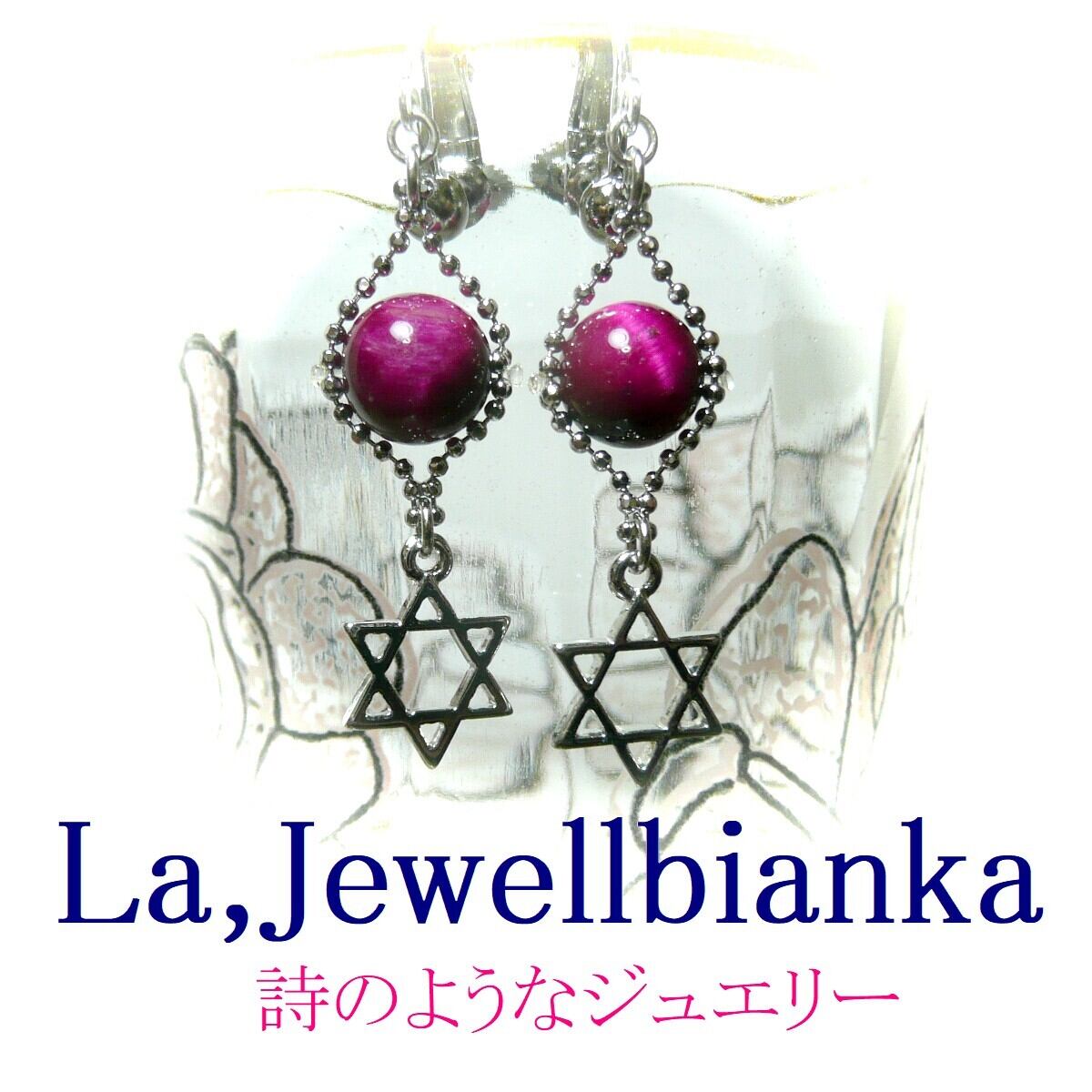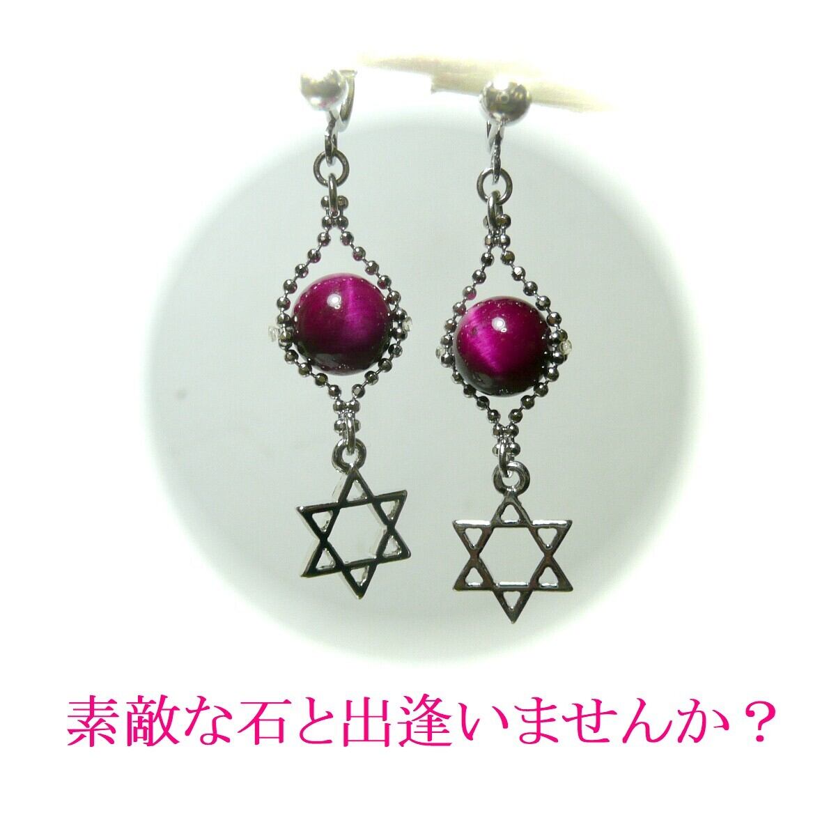 「 マゼンタタイガーアイ ピアス 六芒星 」と検索なさりご覧下さい。
