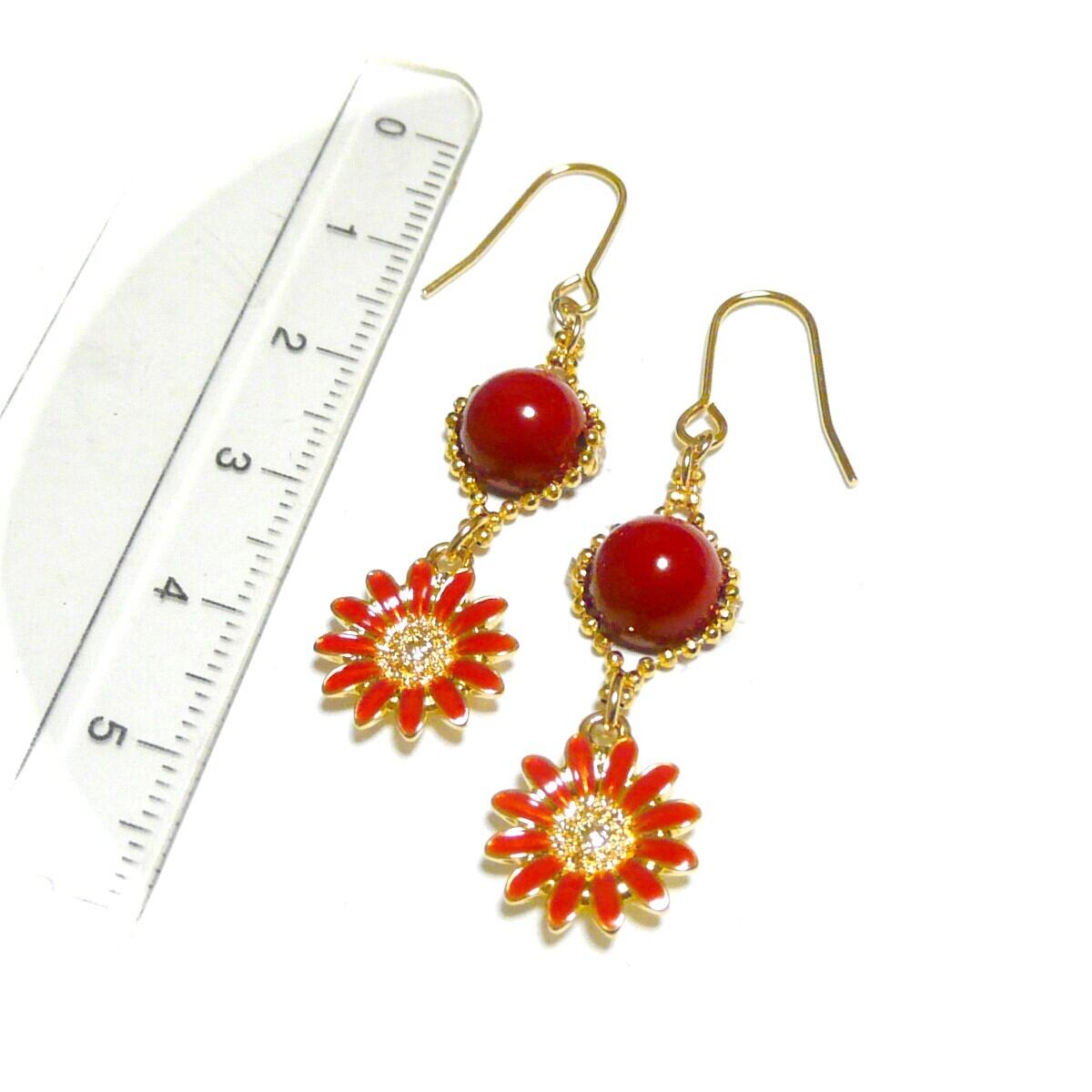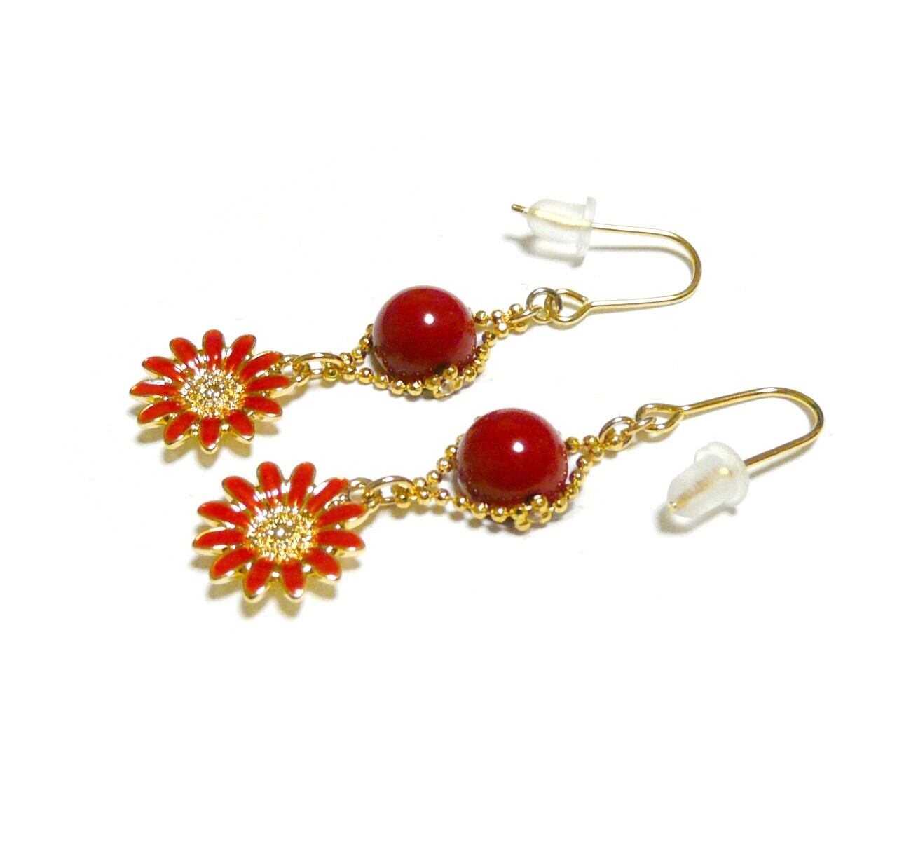マーガレット 赤珊瑚 ピアス さんご 花 フラワーモチーフ コーラル 金色 ゴールドカラー