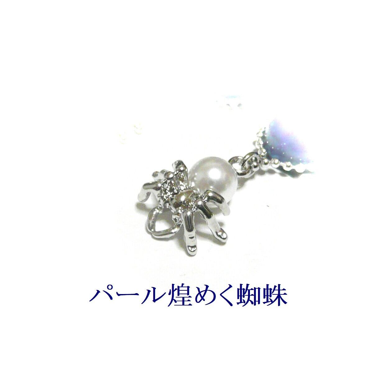 パールを纏ったクモのチャームと共に揺れるピアスです。