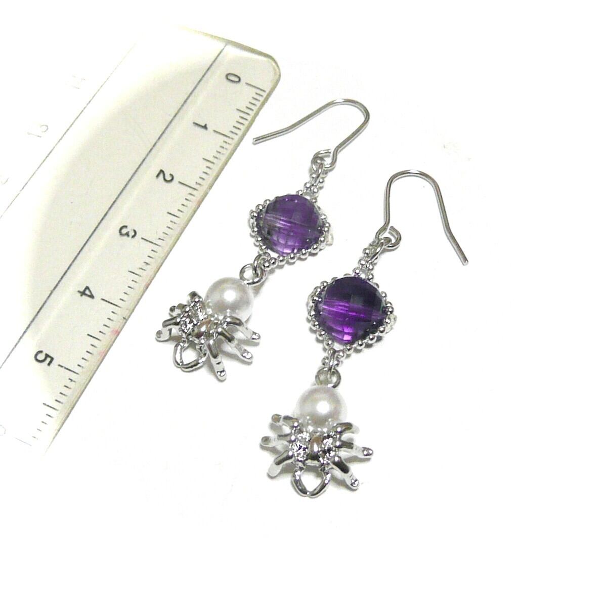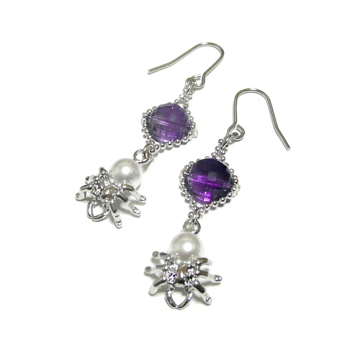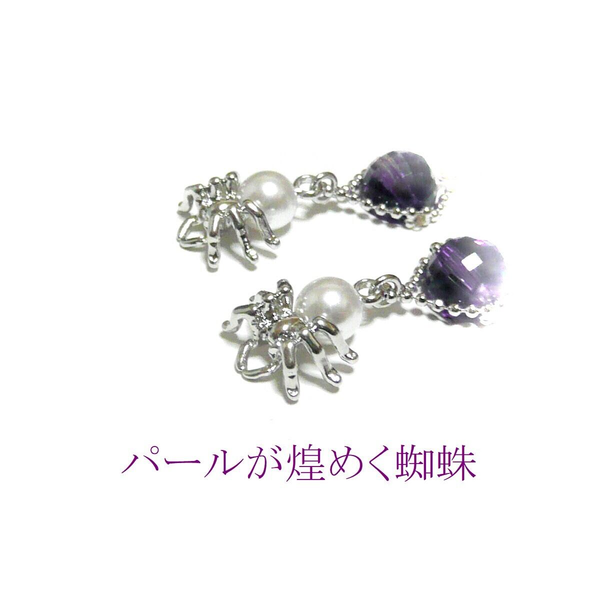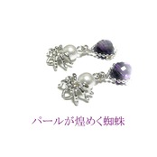 アメジスト ピアス 蜘蛛 パール 真珠クモ 紫水晶 銀色 シルバーカラー